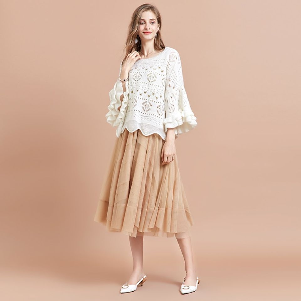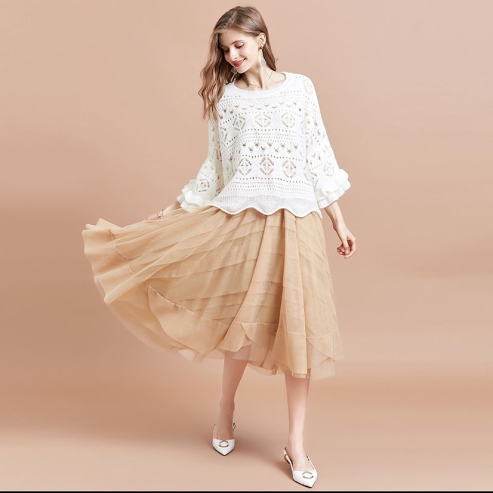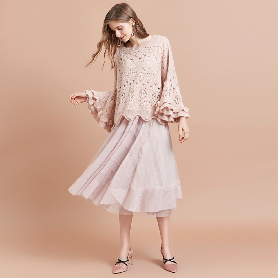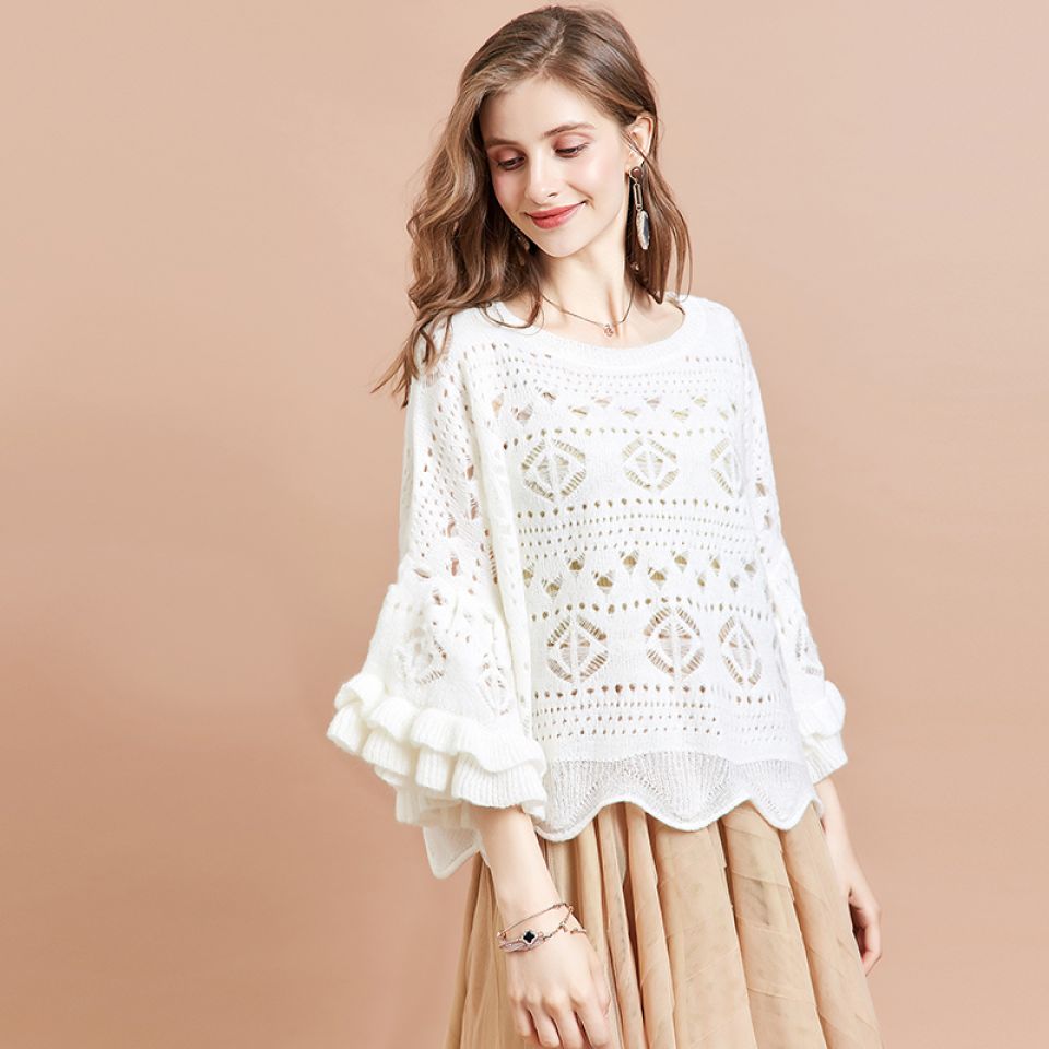 Be the first to review “Layered Bell Sleeve Hollowout Knitted Pullover” Cancel reply