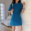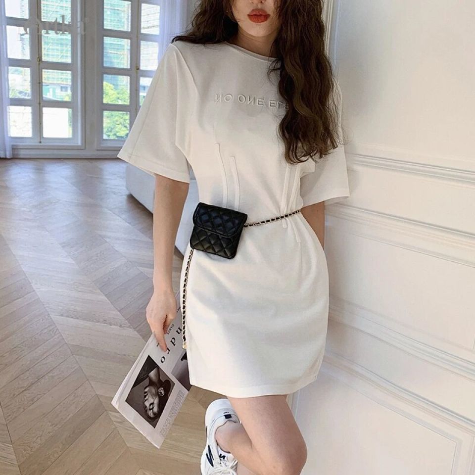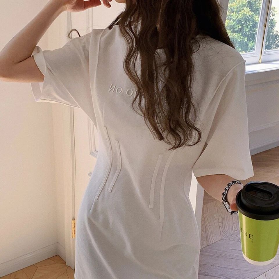 Though it sports a solid pattern, the dress’s charm is in its nuanced details. The O-neck design offers a flattering neckline, while the unique letter embroidery and fishbone design on its short sleeves elevate the dress from simple to sublime. Moreover, the slight stretch in the fabric ensures a snug fit without compromising comfort.