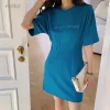 Letter Embroidered Fishbone T-shirt Dress