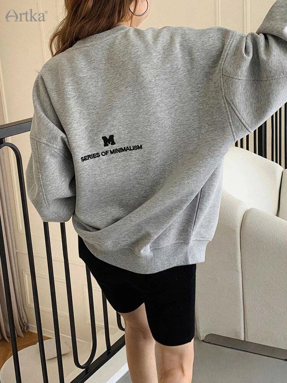 In a world where fashion often speaks louder than words, let the delicate embroidery on this sweatshirt voice your style statement. Unlike the usual, this isn’t merely a solid-patterned pullover. Its meticulous letter embroidery is a testament to Artka’s commitment to detail, ensuring you’re not just dressed, but dressed to impress.