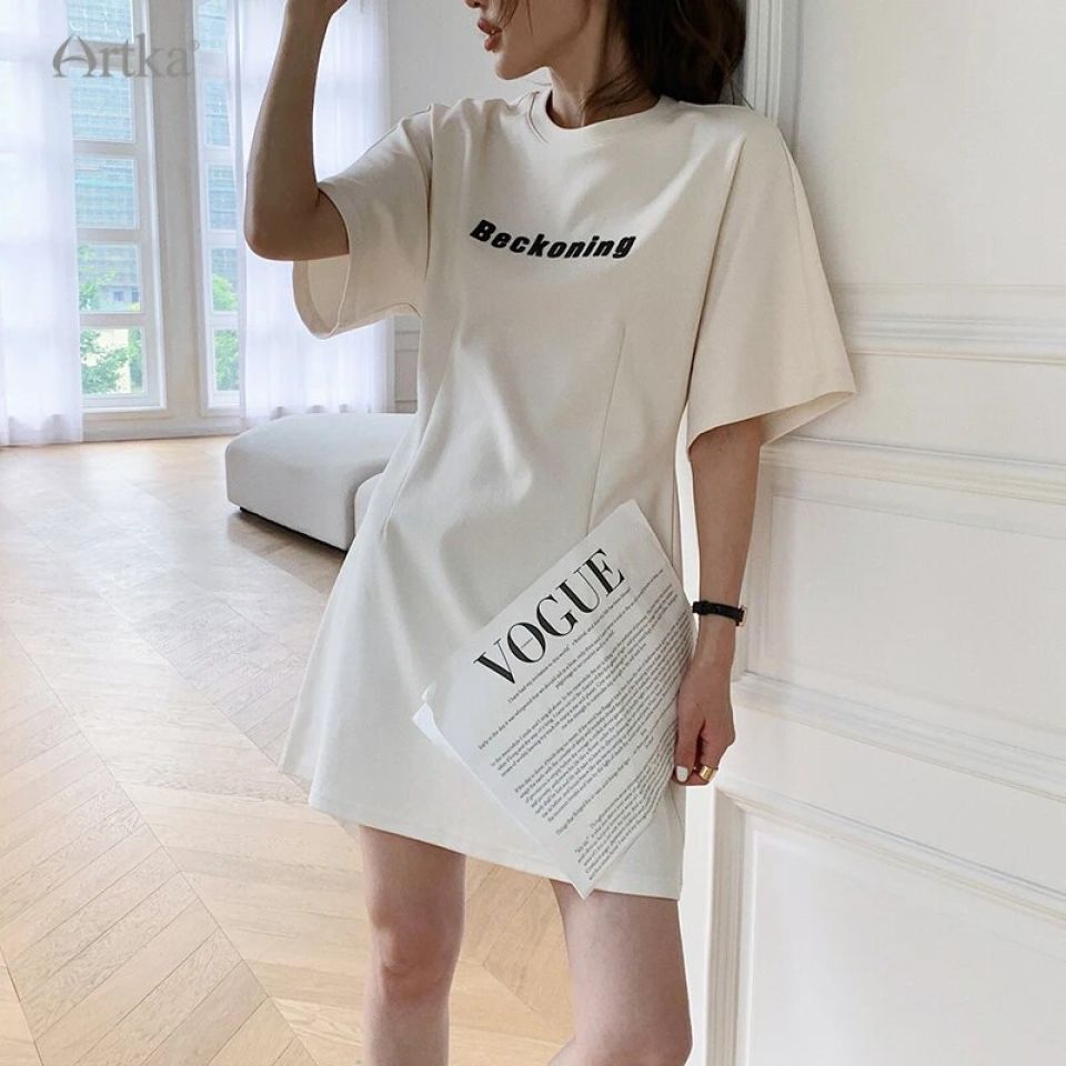 Unmatched Elegance with Artka Letter Embroidered T-shirt Dress