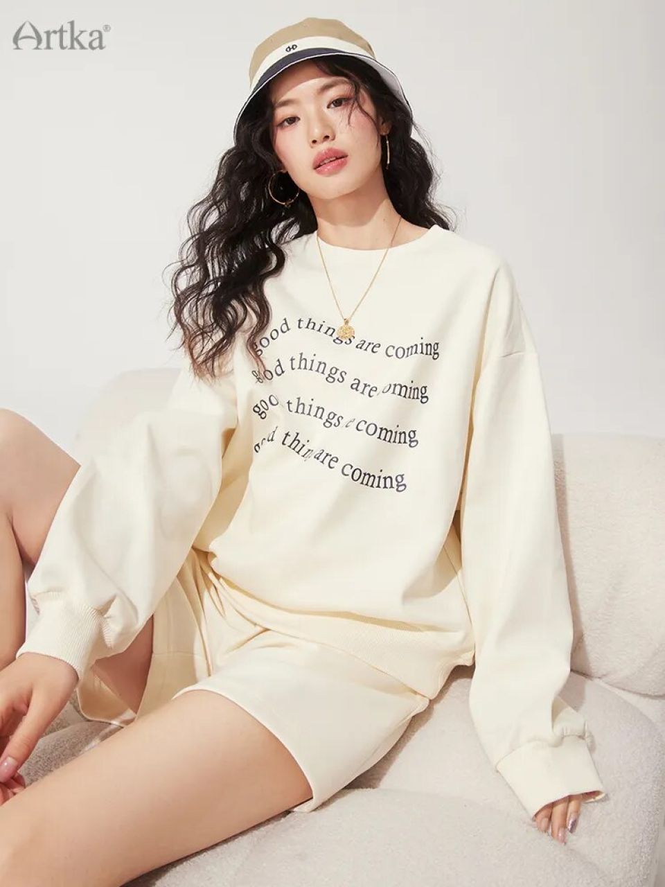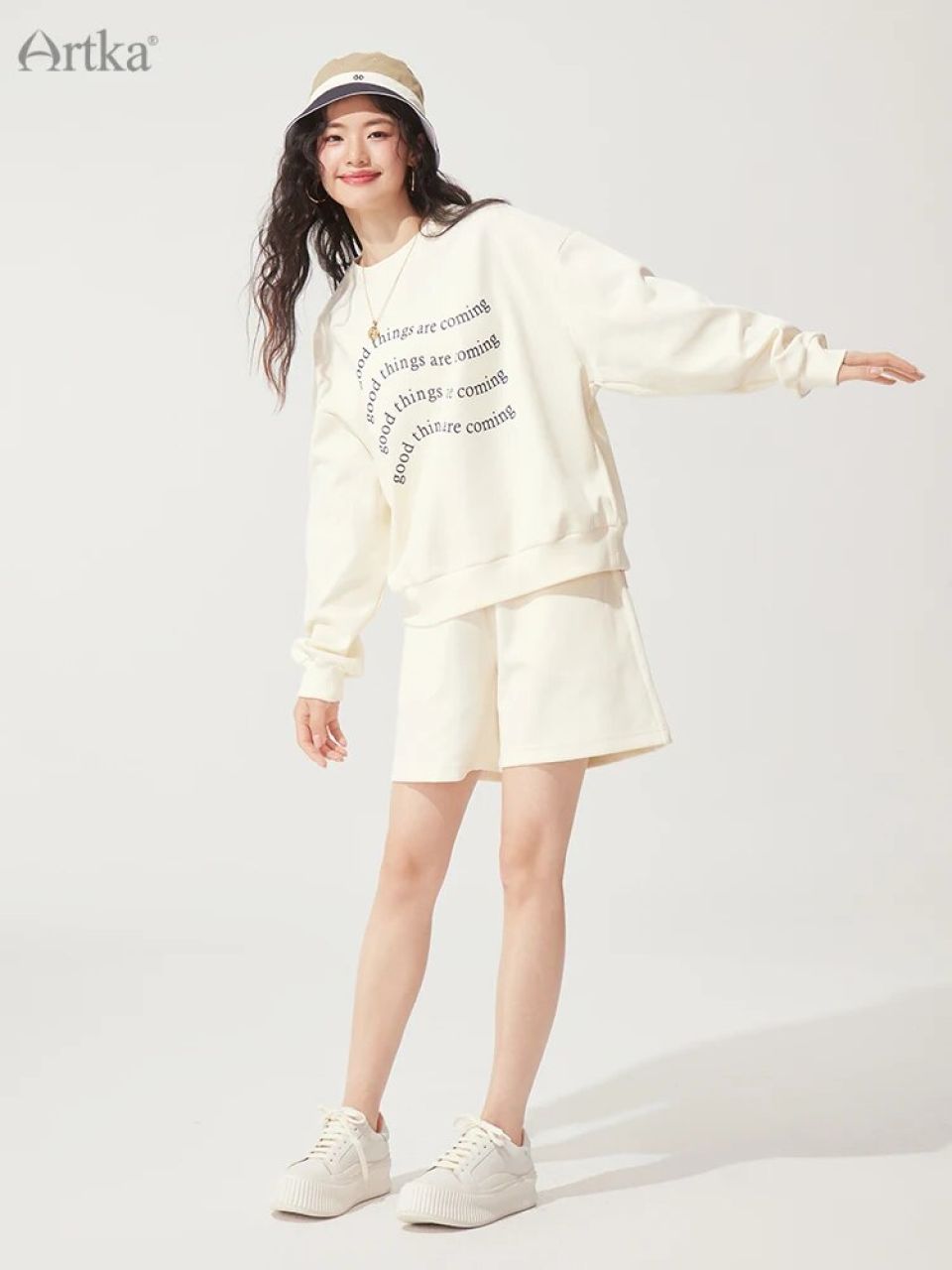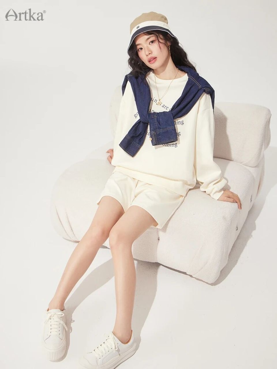 Artka has crafted this suit thinking about the vibrant, young woman in mind. Tailored for the age group of 18-24, the ensemble exudes an energy and freshness that aligns with the spirit of youth. The loose-fit letter print sweatshirt combined with high-waist shorts delivers a blend of fun and sophistication that is perfect for casual outings and hangouts.