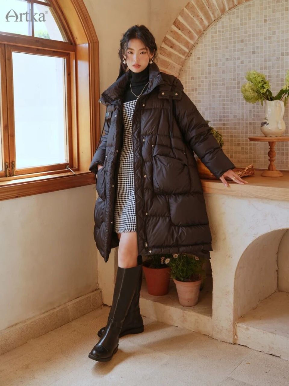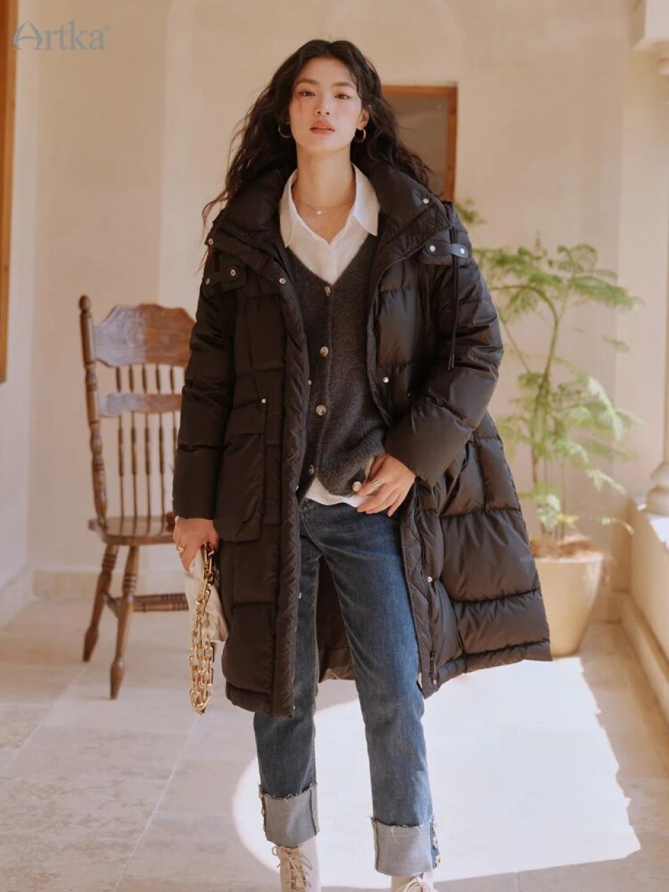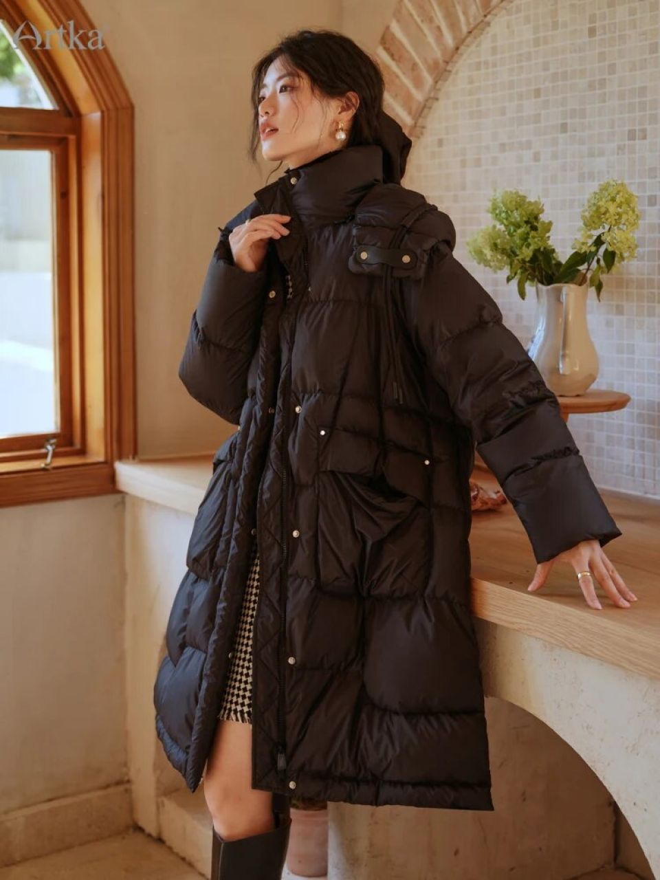 Long Hooded Puffer Jacket by Artka: Embrace Winter in Style