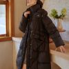 The Long Hooded Puffer Jacket doesn’t just excel in keeping you warm; it’s also a style statement. Not only do the strategically placed pockets add a fashionable touch, but also provide functionality. Store your essentials within easy reach while keeping your hands warm.