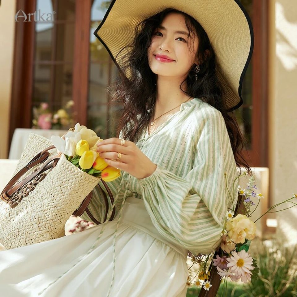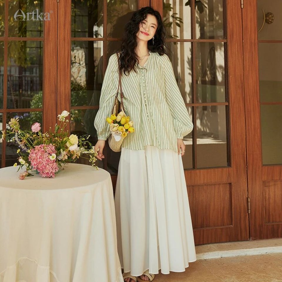 Artka’s Cotton Stripe Blouse is crafted from 100% pure cotton, offering unparalleled comfort and breathability. Cotton’s natural fibers allow air to circulate freely, keeping you cool and comfortable even on the hottest days of summer.