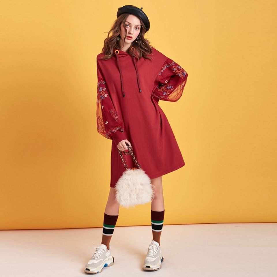 Be the first to review “Mesh Embroidery Hooded Drp-Shoulder Sweatshirt Dress” Cancel reply