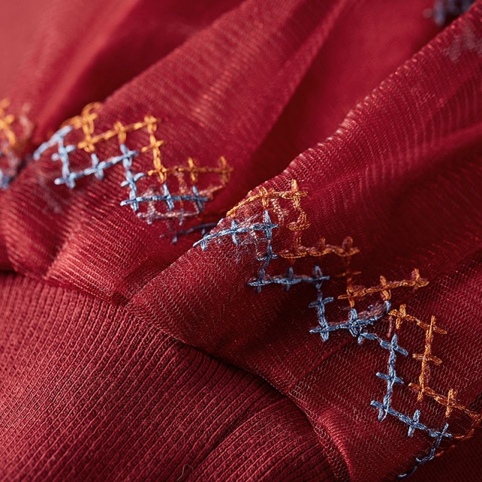 Mesh Embroidery Hooded Drp-Shoulder Sweatshirt Dress