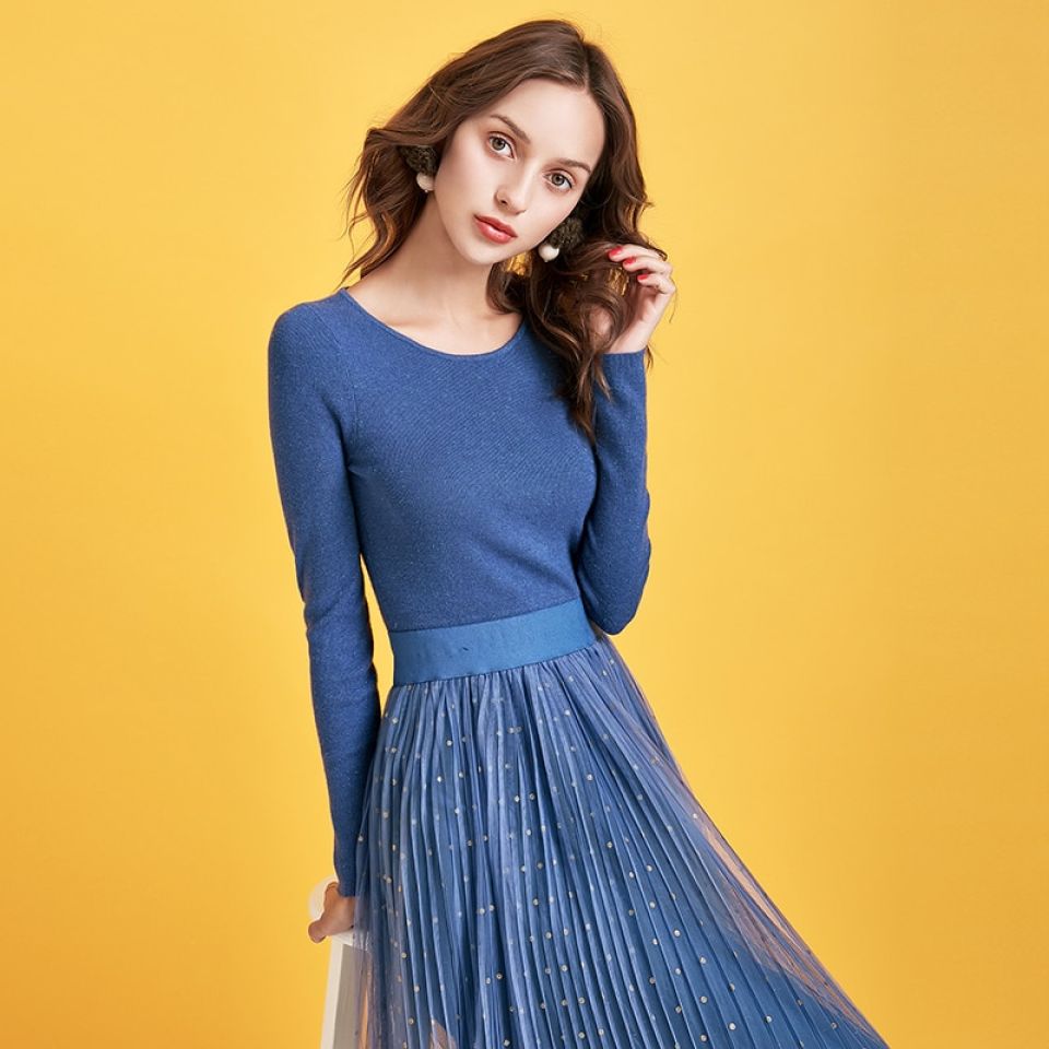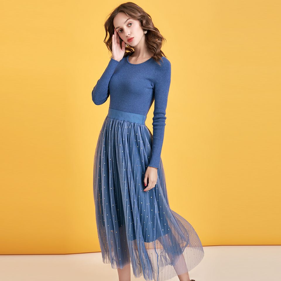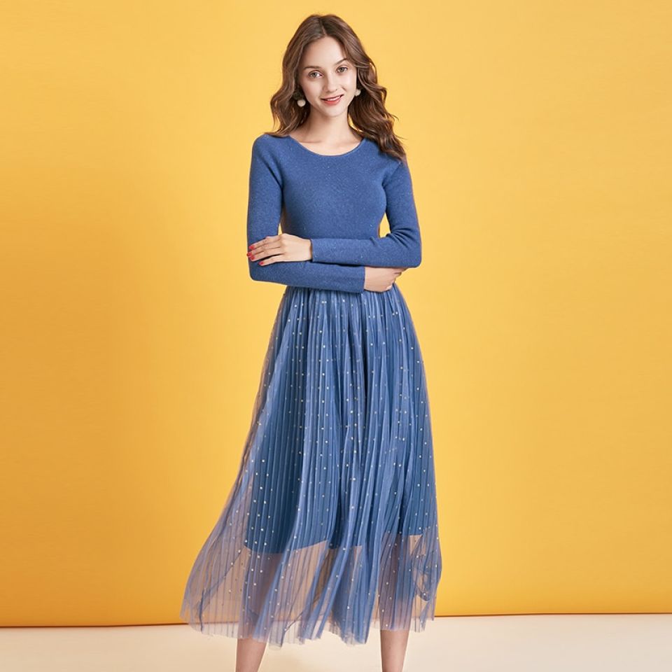 Enhance your wardrobe with the Mesh Stitch Knitted Midi Dress today!