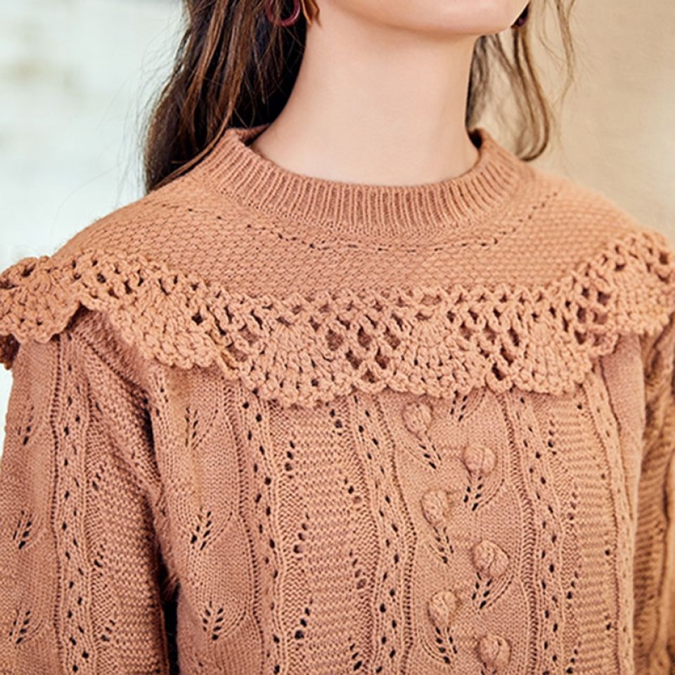 O-Neck Ruffled Knit Sweater