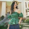 While the blouse shies from overt decoration, its print pattern speaks volumes. Coupled with the alluring slash neck and the signature puff sleeves, it creates a mesmerizing blend of subtlety and boldness that's bound to turn heads wherever you go.