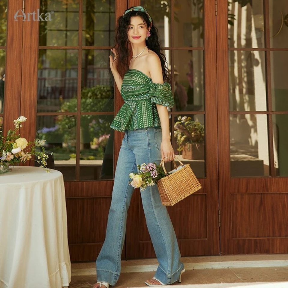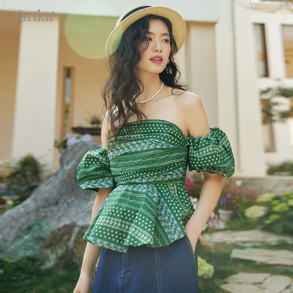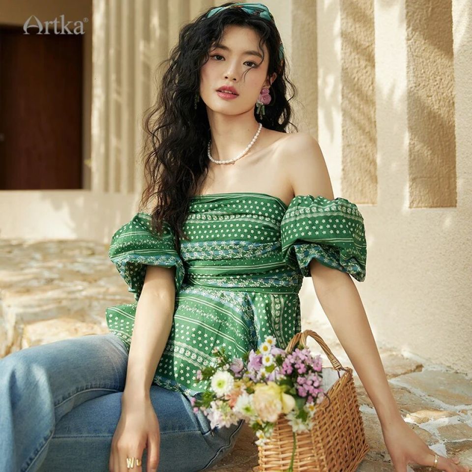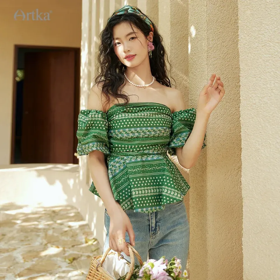 Discover the exquisite craftsmanship of Artka, a renowned brand that intertwines vintage aesthetics with contemporary fashion sensibilities. This off-shoulder puff sleeve top, bearing the unique model as a testament to the brand's unwavering commitment to style and quality.