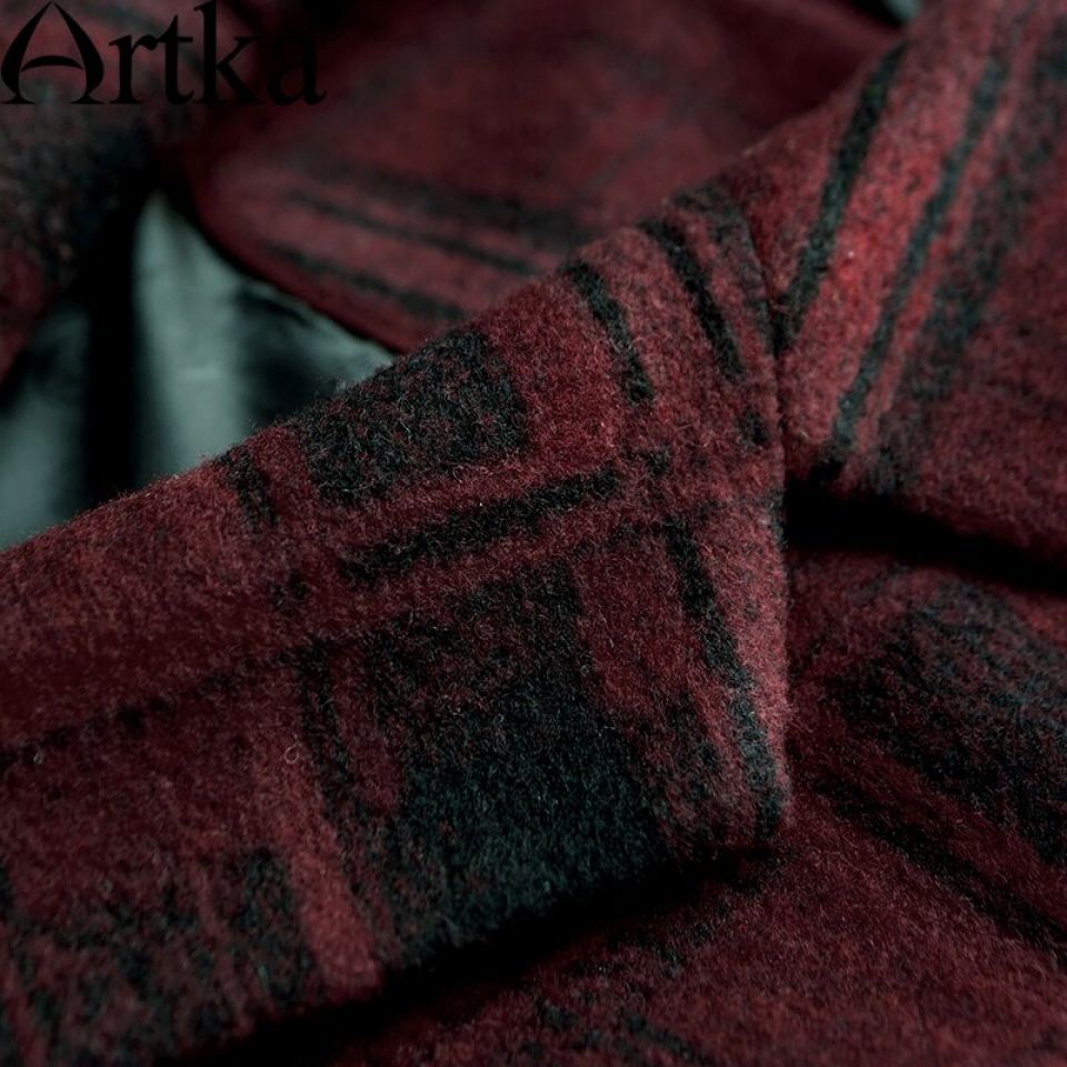 Plaid Double Breasted Drop-Shoulder Long Overcoat (Claret One Size)