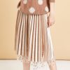 Polka Dot Mesh Pleated Skirt With Elastic Waist