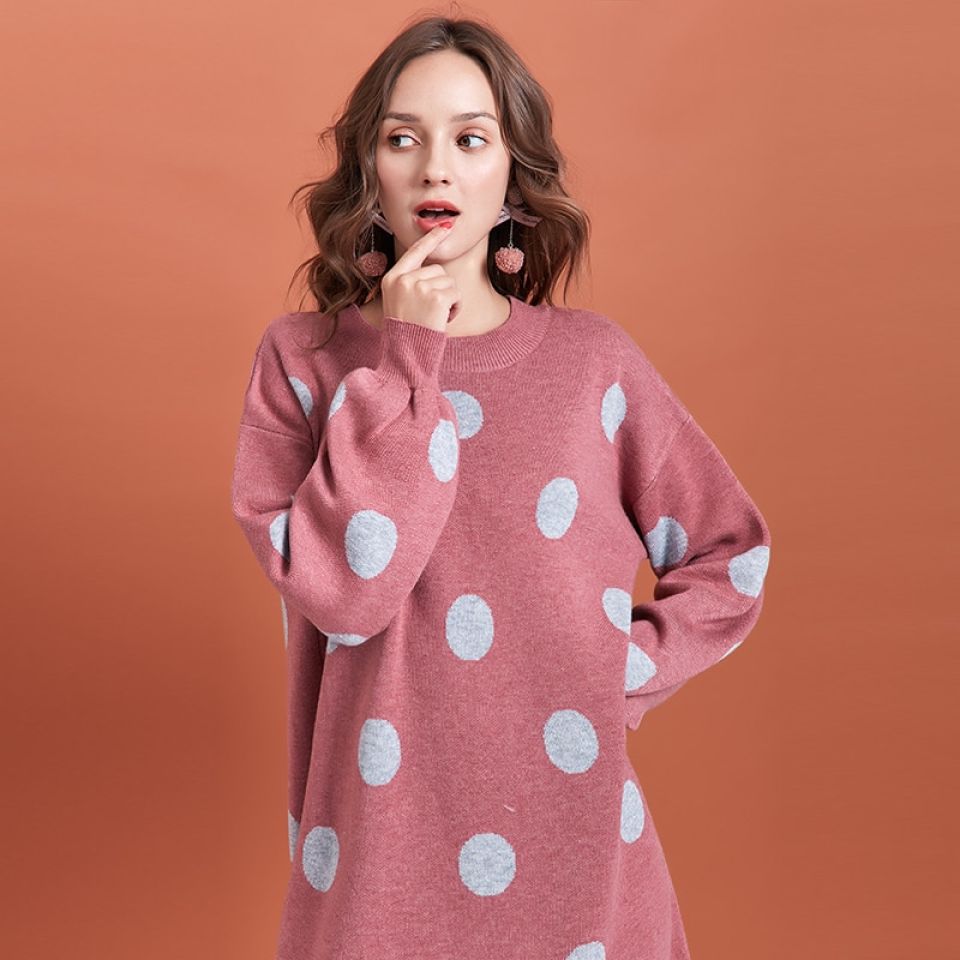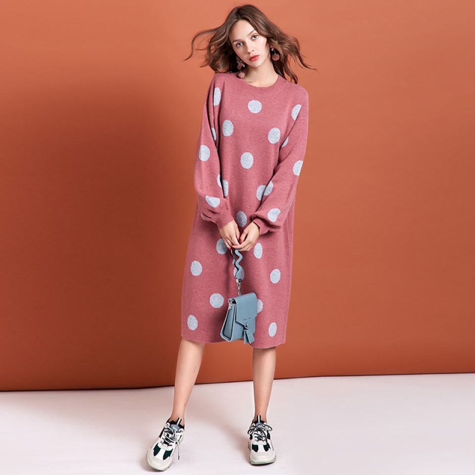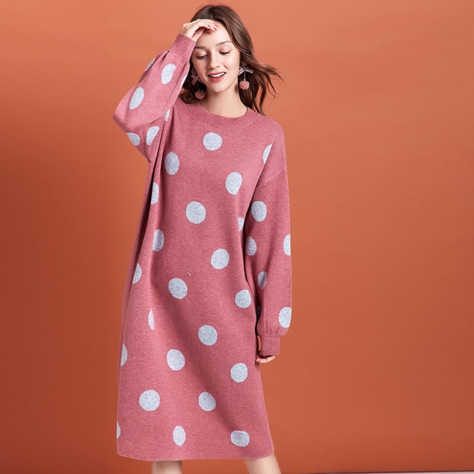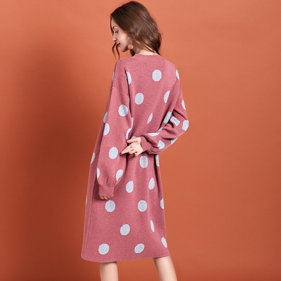 Be the first to review “Polka Dot O-Neck Lantern Sleeve Long Sweater Dress” Cancel reply