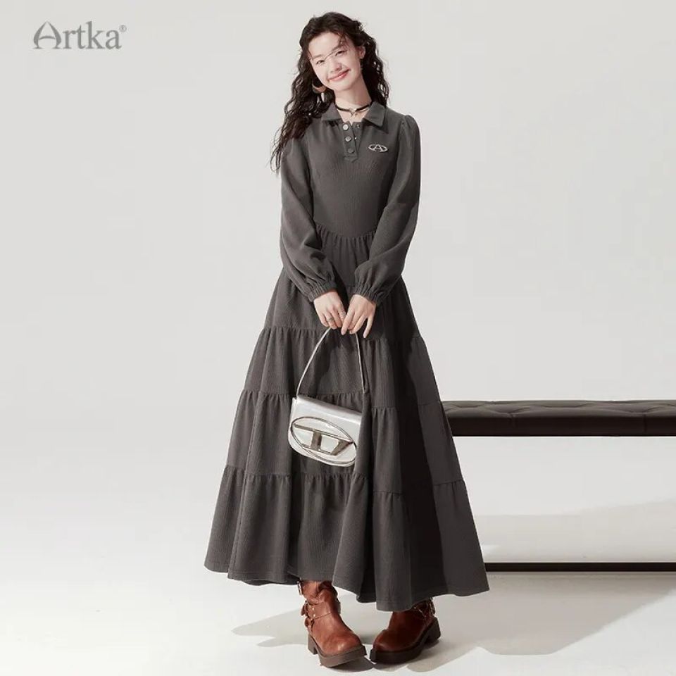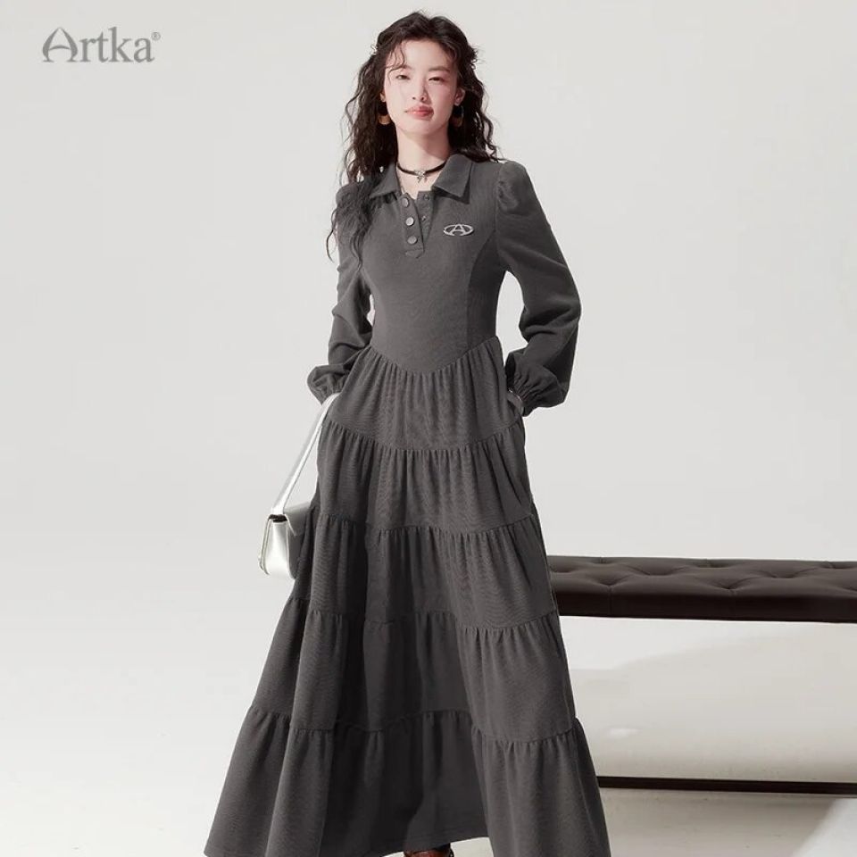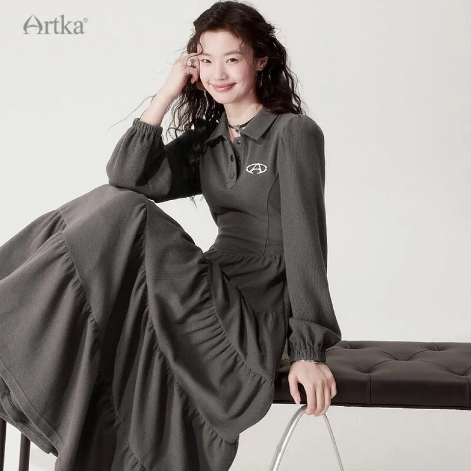 Discover the Artka Enchantment Polo Neck Long Puff Sleeves Cake Dress