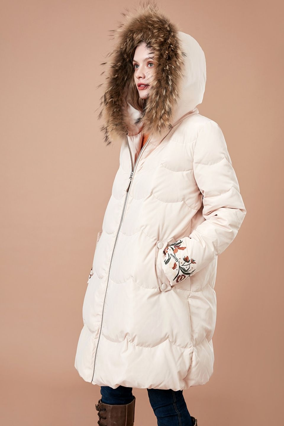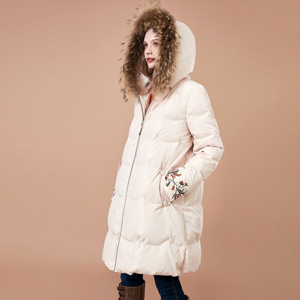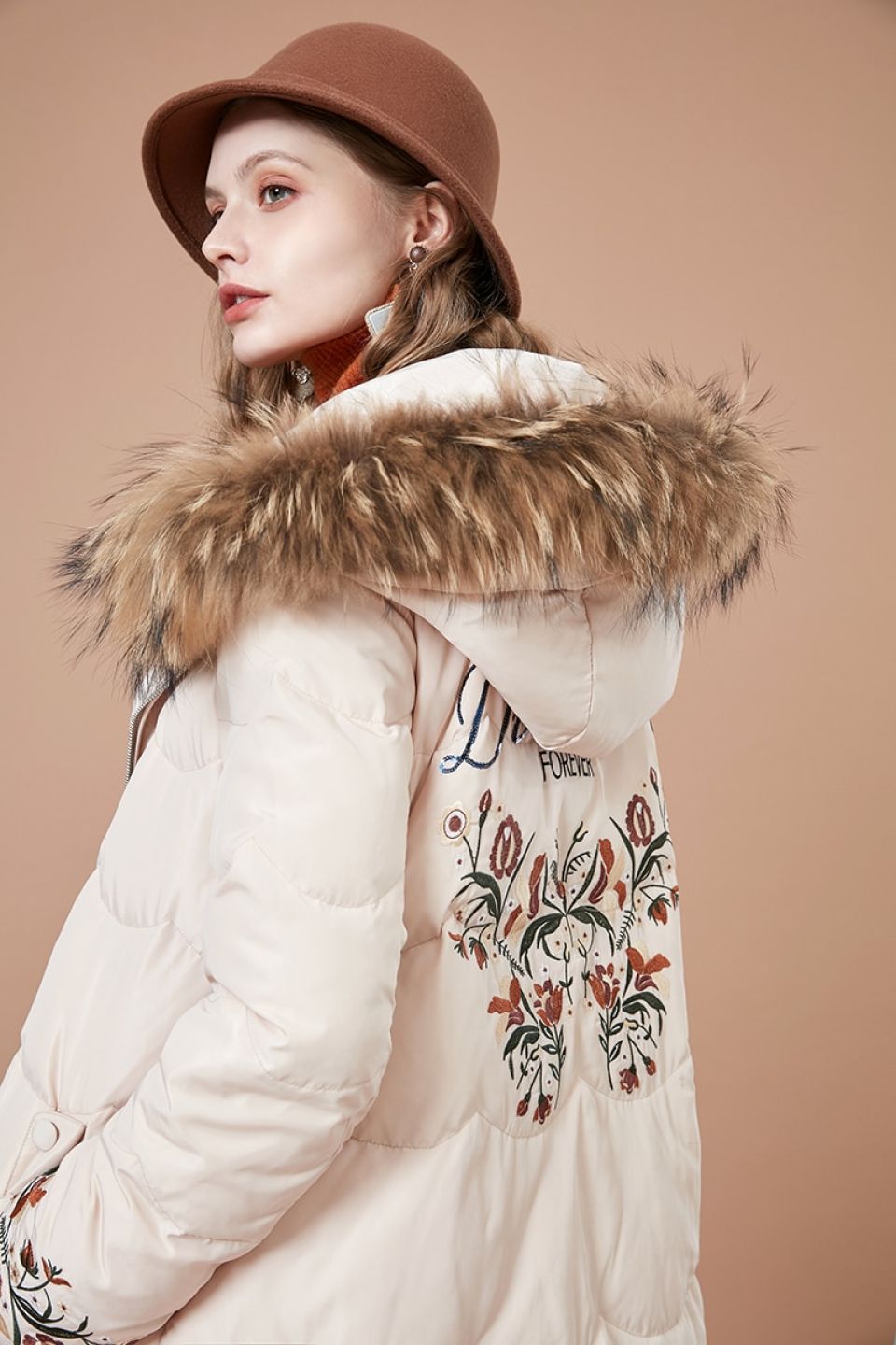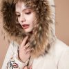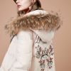 Premium Embroidered Faux Fur Trim Hood Parka Jacket