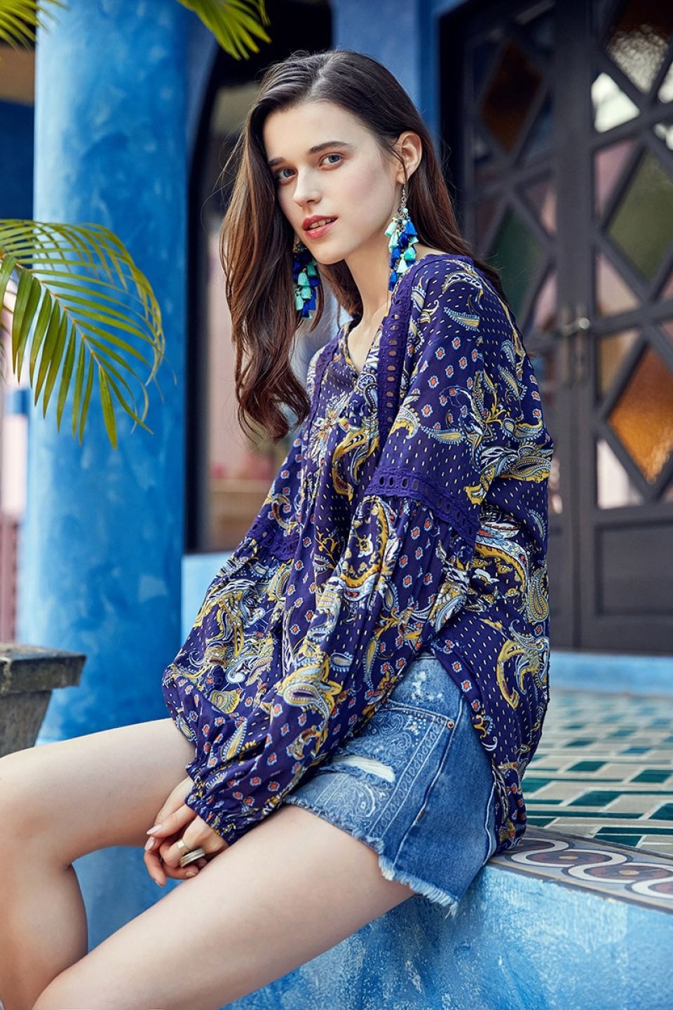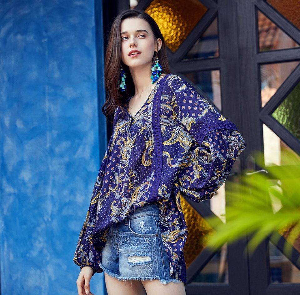 Discover the charm of the Printed Breezy Boho Style Blouse, designed to bring a touch of free-spirited elegance to your wardrobe. This blouse combines a relaxed fit with intricate patterns, making it a must-have for any boho fashion enthusiast.