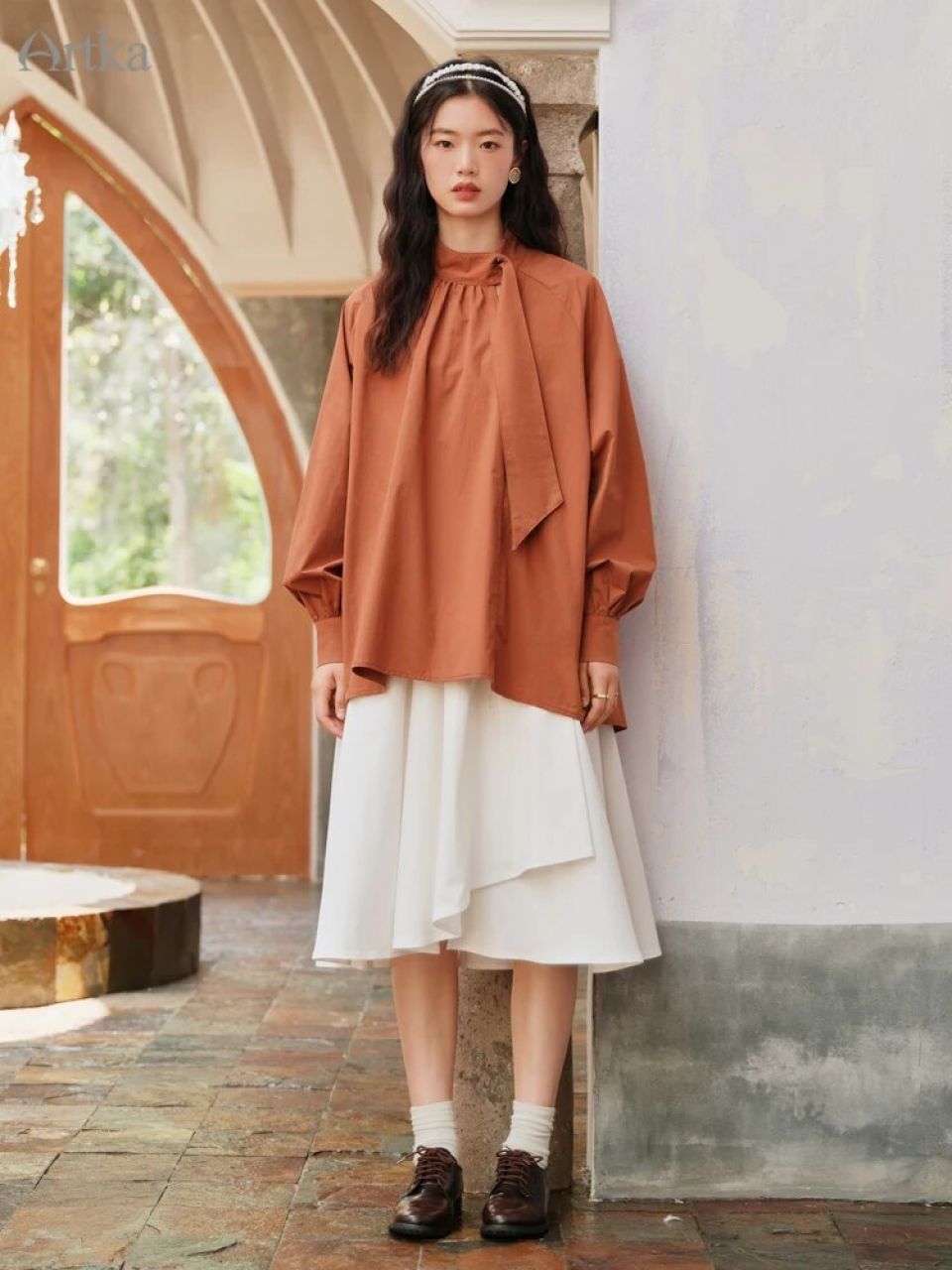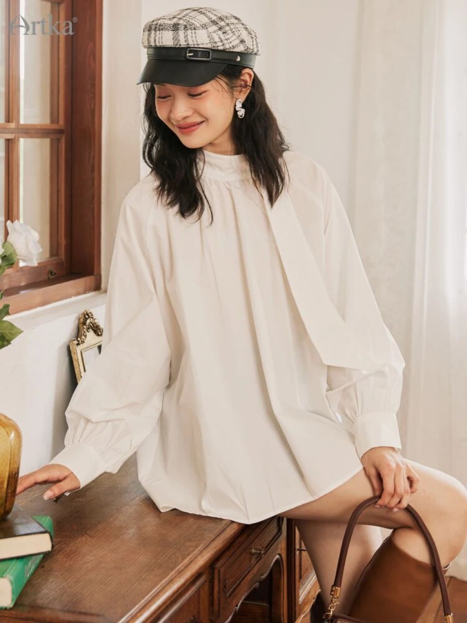 Artka’s 2022 Autumn New Women Blouse gracefully combines 100% genuine cotton material with a casual, loose-fit design, enveloping you in unmatched comfort and style. The blouse boasts a distinctive half-high collar, presenting an elegant silhouette while ensuring you stay cozy as the seasons change. With its mid-weight thickness, this garment balances warmth and breathability, making it an indispensable addition to your autumn wardrobe.