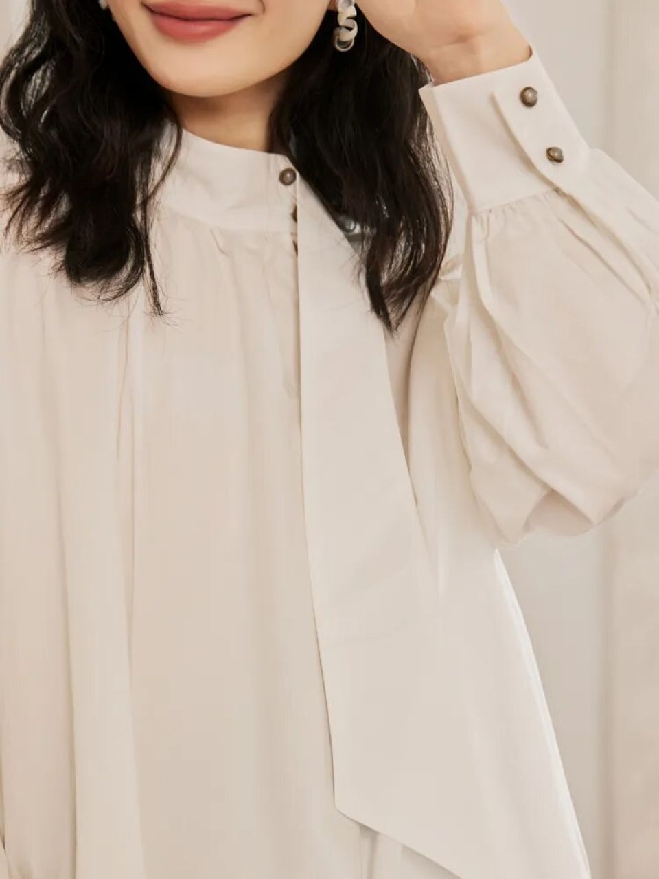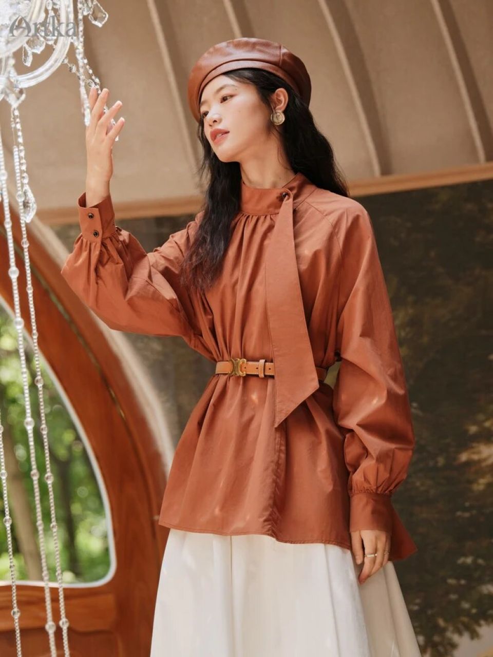 Boldly embodying a harmonious blend of elegance and casual chic, the Artka blouse is designed for the modern woman who navigates through life with grace. Its pullover design and non-stretch fabric accommodate swift, effortless dressing, while the trendy ribbon bandage decoration adds a subtle, sophisticated flair to your look. The blouse's solid pattern further complements its minimalist aesthetic, serving as a versatile piece that seamlessly integrates with various fashion styles and occasions.