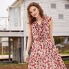 Ruffle Hem Cinched Waist Floral Midi Dress