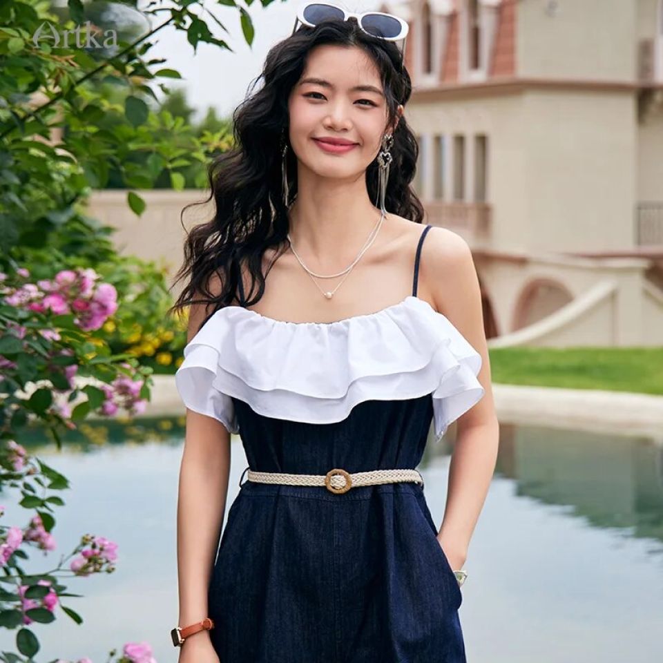 Artka blends casual comfort with elevated style in this Ruffle Wide Leg Jumpsuit With Belt, embodying a relaxed yet chic aesthetic. Crafted from premium cotton, this piece is soft to the touch, breathable, and perfect for wearing from day to night, providing unparalleled comfort without sacrificing style.