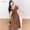 While many dresses are confined, this one celebrates freedom. It’s designed with a loose-fit silhouette, making it an ideal choice for women who cherish comfort as much as style. The high waistline, coupled with the natural factors waist, gives the illusion of a longer, more slender figure. The short sleeves, combined with its summer-friendly design, make it a must-have for warm days and sultry nights.