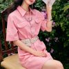 Safari Style Denim Shirt Dress With Belt