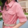 Every aspect of this dress shouts elegance and style. The turn-down collar exudes an air of sophistication, while the belt decoration accentuates your waist, creating a flattering and feminine look. Coupled with its knee-length cut, the dress is versatile enough for daytime and evening affairs.