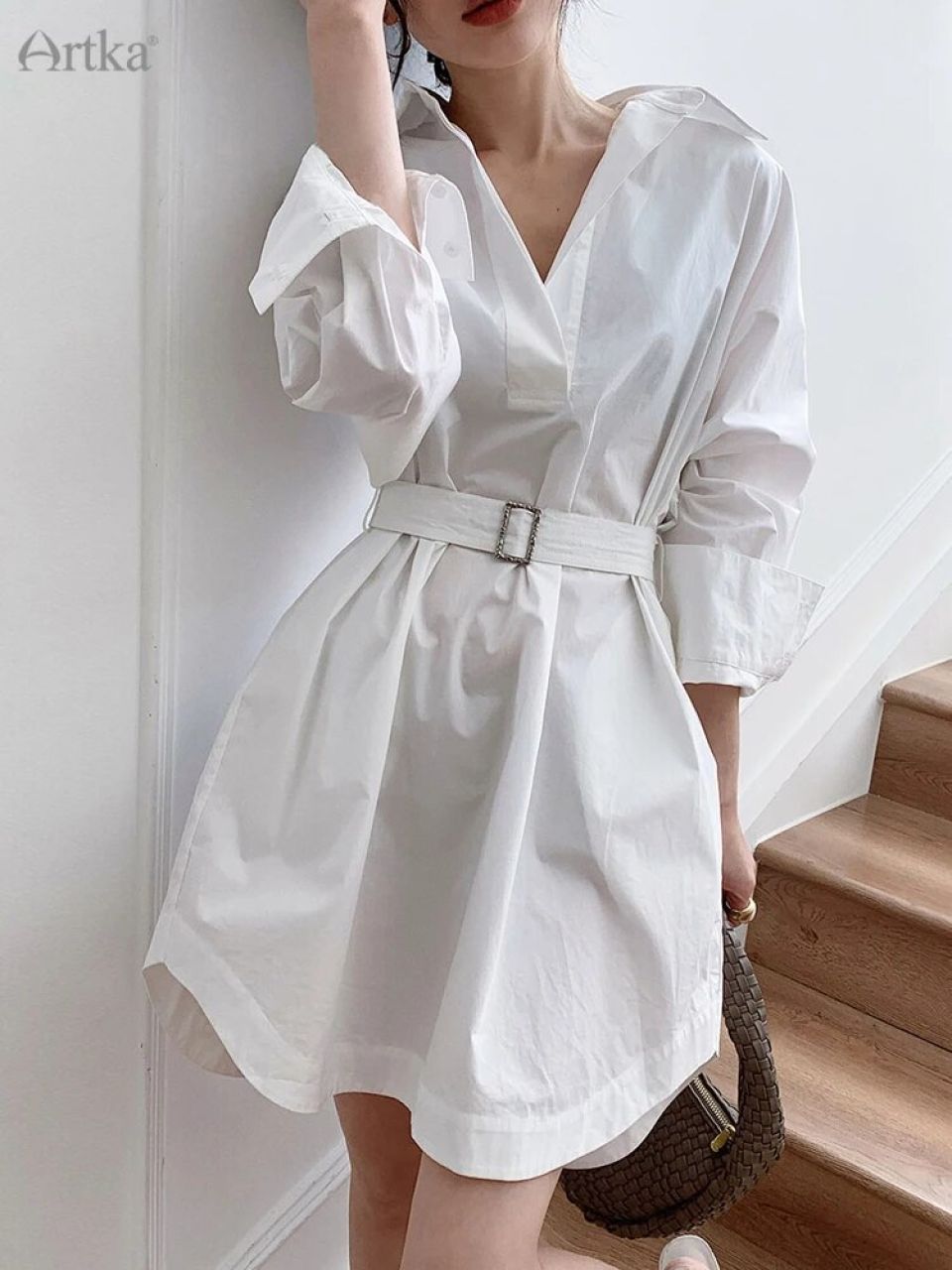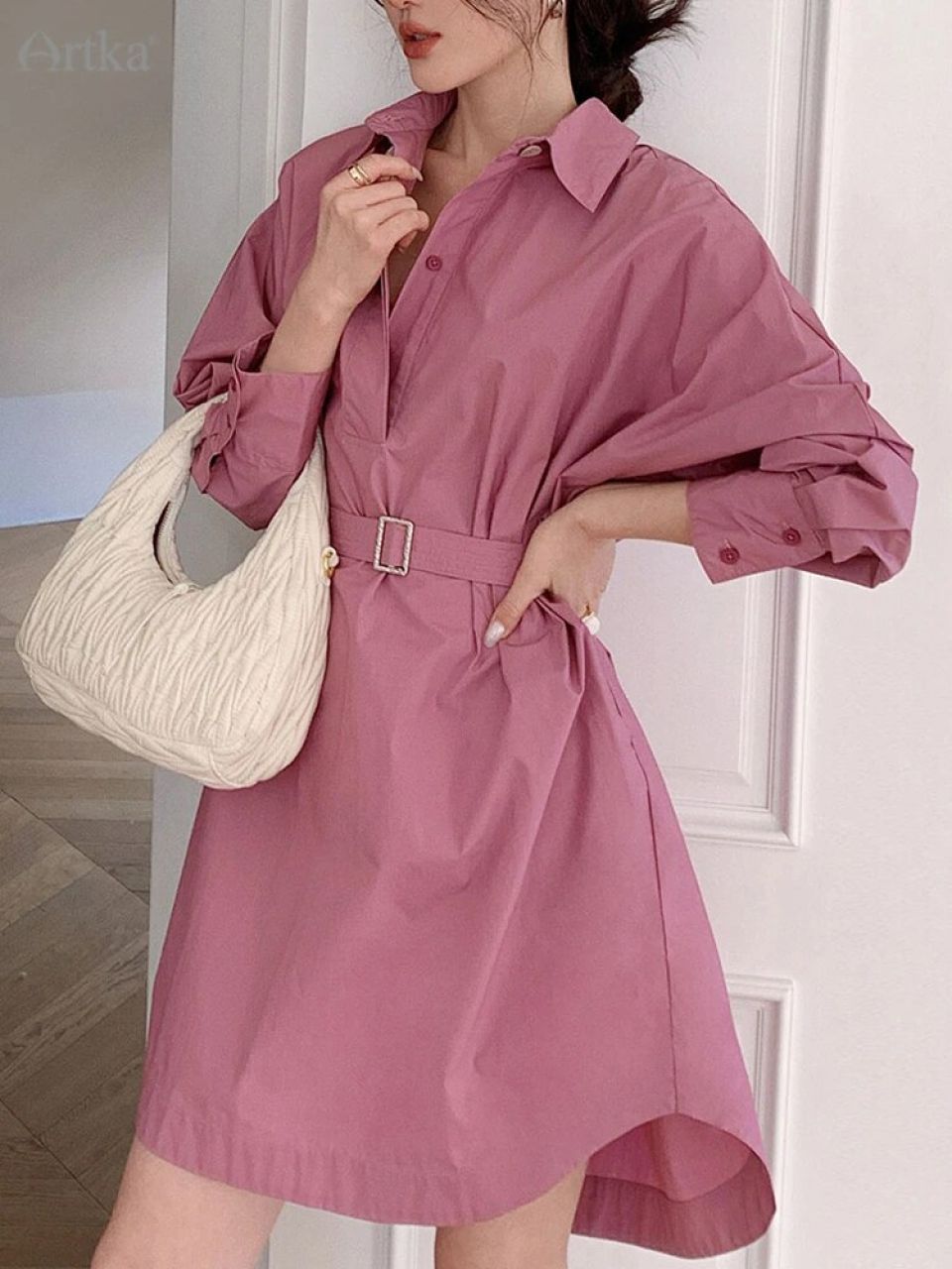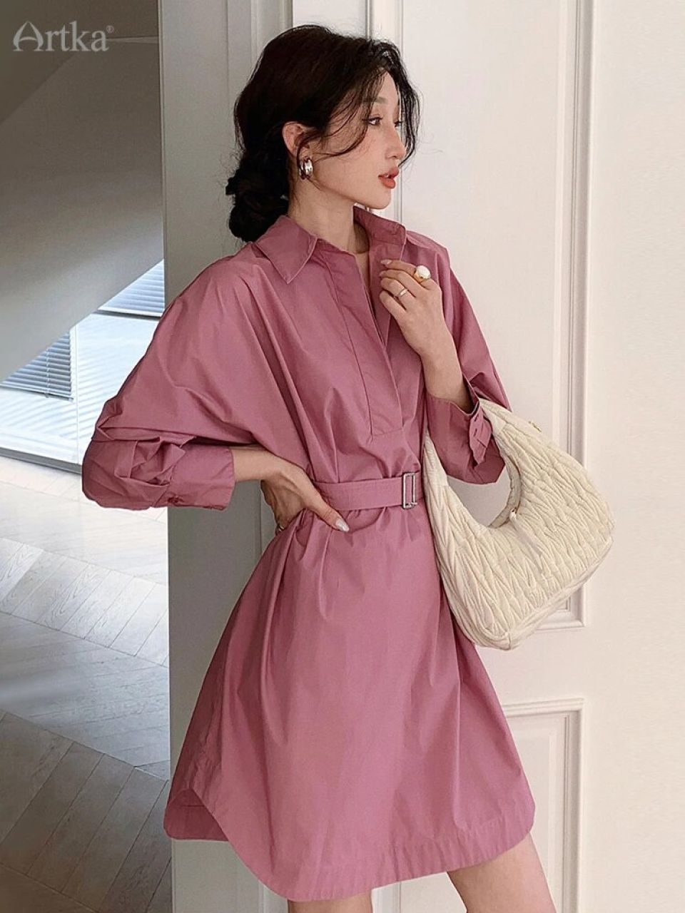 Step into a dress that exudes quiet power and grace. The ARTKA 2023 Spring New Women Dress encapsulates the essence of the modern office lady with its solid color design and casual flair, presenting a piece that seamlessly transitions from the hustle of the workplace to the ease of after-hours.