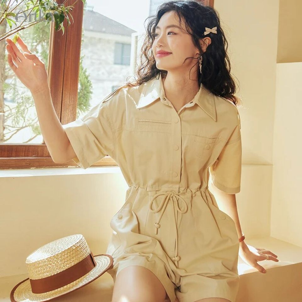 Drawing inspiration from cargo pants, this playsuit brings a dash of edginess to your wardrobe. The belt decoration serves as a stylish addition to cinch the waist, accentuating your silhouette. Whether paired with sneakers for a casual day or heels for an evening out.