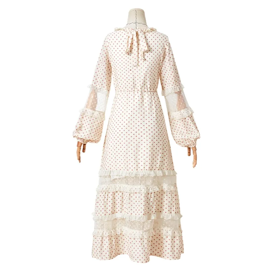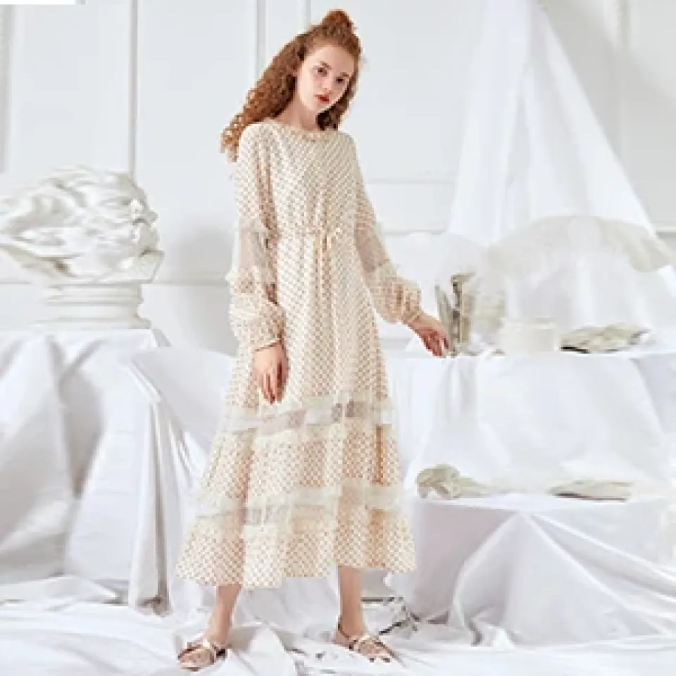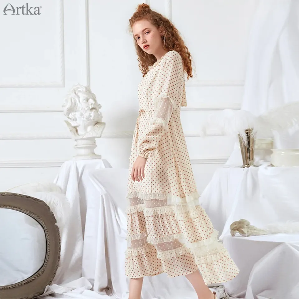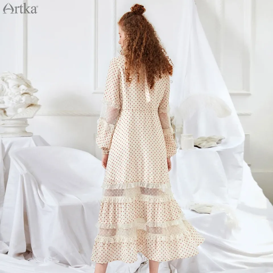 Introducing the ARTKA 2019 Spring Summer Women’s Dress, a stunning piece that captures the essence of femininity and sophistication. This dress features delicate lace stitching, an O-neck design, and a flattering A-line silhouette adorned with playful dot patterns. Perfect for spring and summer events, this dress ensures you look and feel beautiful from daytime outings to special occasions. The combination of intricate details and thoughtful design makes this dress a standout addition to your wardrobe. Soft, High-Quality Fabric for All-Day Comfort Crafted from a blend of nylon, viscose, lanon, and spandex, this dress offers a luxurious feel against your skin while providing breathability and flexibility. The lightweight fabric drapes effortlessly over the body, allowing for comfortable wear throughout the day. The inclusion of spandex ensures a touch of stretch, making movement easy and natural. Whether you’re attending a garden party or heading out for a weekend brunch, this dress provides unparalleled comfort that complements its elegant style. Intricate Lace Stitching and Sweet Dot Pattern The lace stitching adds a touch of romantic elegance, enhancing the dress’s overall appeal with a delicate and refined touch. Paired with a sweet dot pattern, this dress embodies classic charm with a playful twist. The intricate lace detail creates a soft, feminine look that stands out in any setting. This combination of textures ensures that your dress remains visually appealing and unique, allowing you to showcase your personal style effortlessly. Adjustable Sashes for a Customized Fit The adjustable sashes at the waistline allow you to tailor the fit of the dress to your liking, accentuating your natural shape while providing comfort. This added feature ensures that the dress complements various body types, offering a flexible and flattering fit for everyone. Cinch the sash tighter for a more defined waist or keep it loose for a relaxed, breezy look. The natural waistline and customizable sash add to the dress’s versatility, making it perfect for both casual and semi-formal occasions. Elegant Lantern Sleeves for a Timeless Look The full-length lantern sleeves provide a vintage-inspired touch that enhances the overall elegance of this dress. Flowing and soft, these sleeves add volume and movement, creating a graceful silhouette that’s perfect for any event. The O-neckline complements the lantern sleeves by providing a balanced look that’s both classic and contemporary. Whether styled with dainty jewelry or bold accessories, this dress is sure to make you feel like the epitome of elegance. Mid-Calf Length for Versatile Styling The mid-calf length of this dress makes it suitable for a variety of occasions, from day events to evening gatherings. The A-line silhouette falls gracefully, allowing you to pair the dress with different types of footwear, such as heels for a polished look or flats for a more casual vibe. The timeless length, combined with the intricate lace and dot pattern, ensures that you look stylish and put-together without the effort.