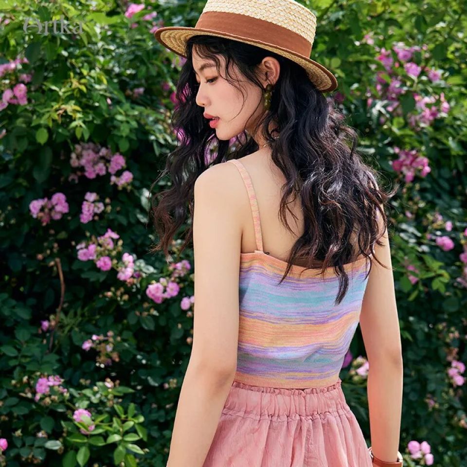 The ARTKA New Women Tops uniquely blend contemporary fashion elements with classic designs. The combination of a sultry V-neck with the finesse of colourful stripes makes this camisole an epitome of style and comfort for every modern woman.