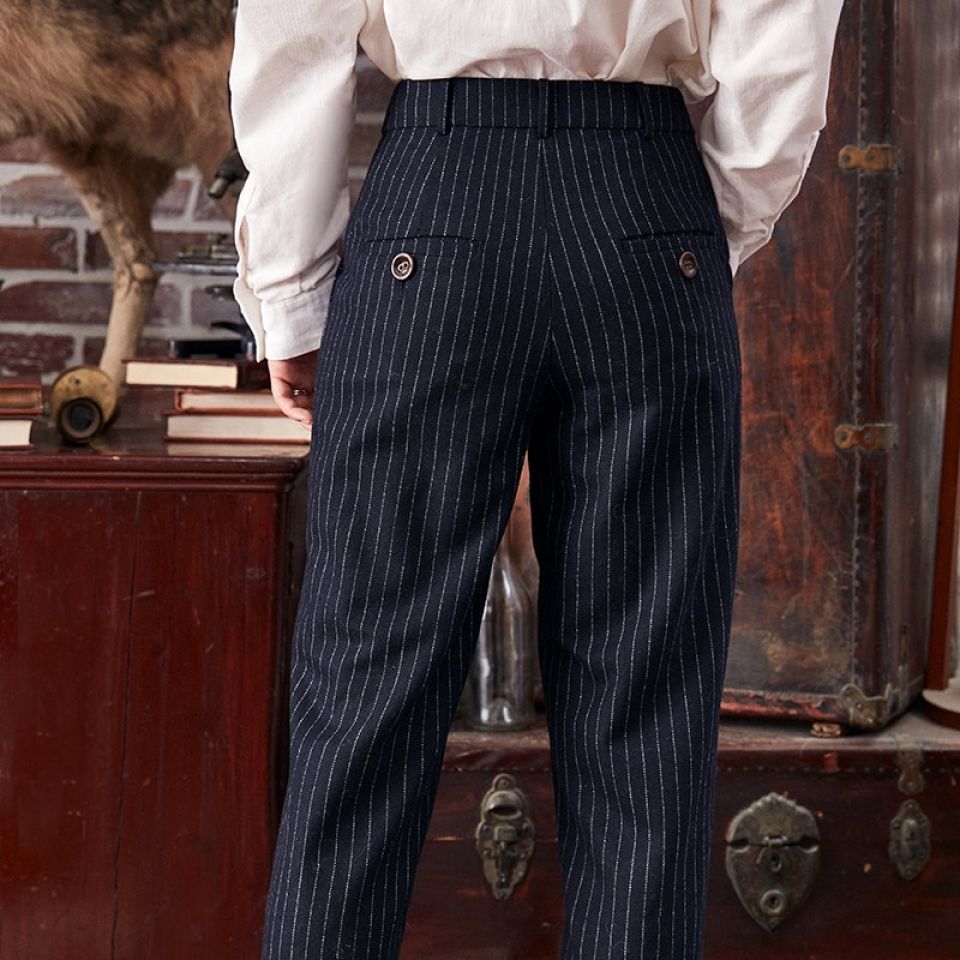 Pair these trousers with a crisp white shirt for a professional look or a casual sweater for a relaxed weekend outfit. The striped pattern ensures you stand out with a classic yet contemporary style.