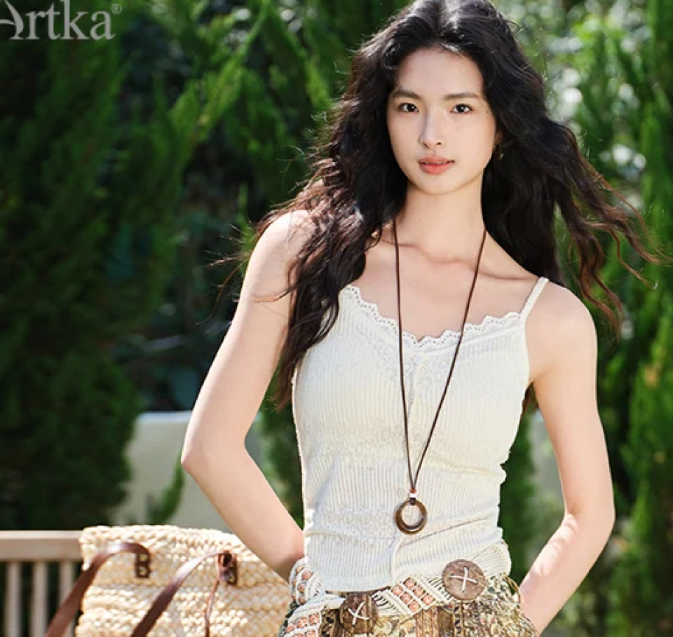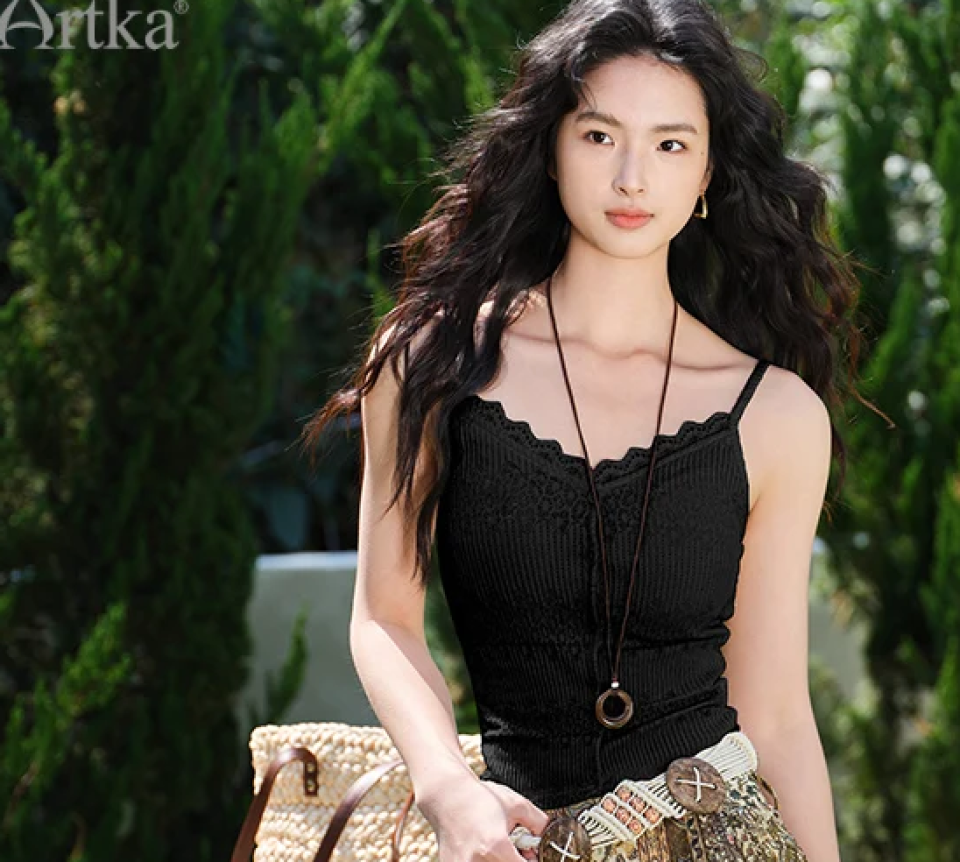 Elevate your summer wardrobe with the ARTKA 2025 Summer Bohemia Style Jacquard Knitted Camisole, a stunning fusion of romantic charm and effortless wearability. Crafted with exquisite jacquard knitting, this V-neck tank top brings a touch of bohemian spirit while maintaining a chic, modern silhouette. Designed with built-in breast pads for comfort and confidence, it is the perfect top for warm days, casual outings, and stylish layering. Whether you pair it with flowing skirts, tailored trousers, or laid-back denim, this camisole is your go-to piece for versatile summer fashion.