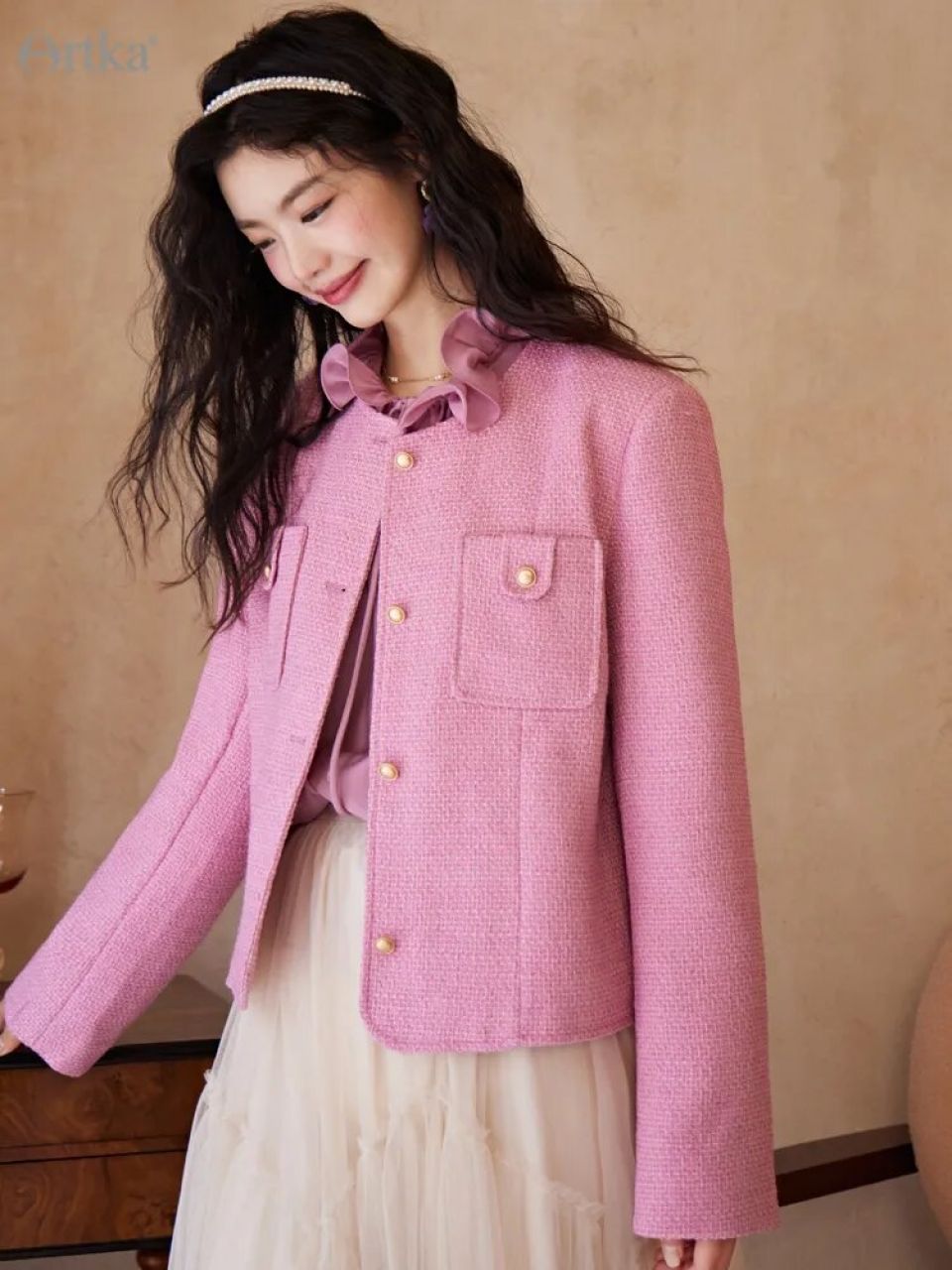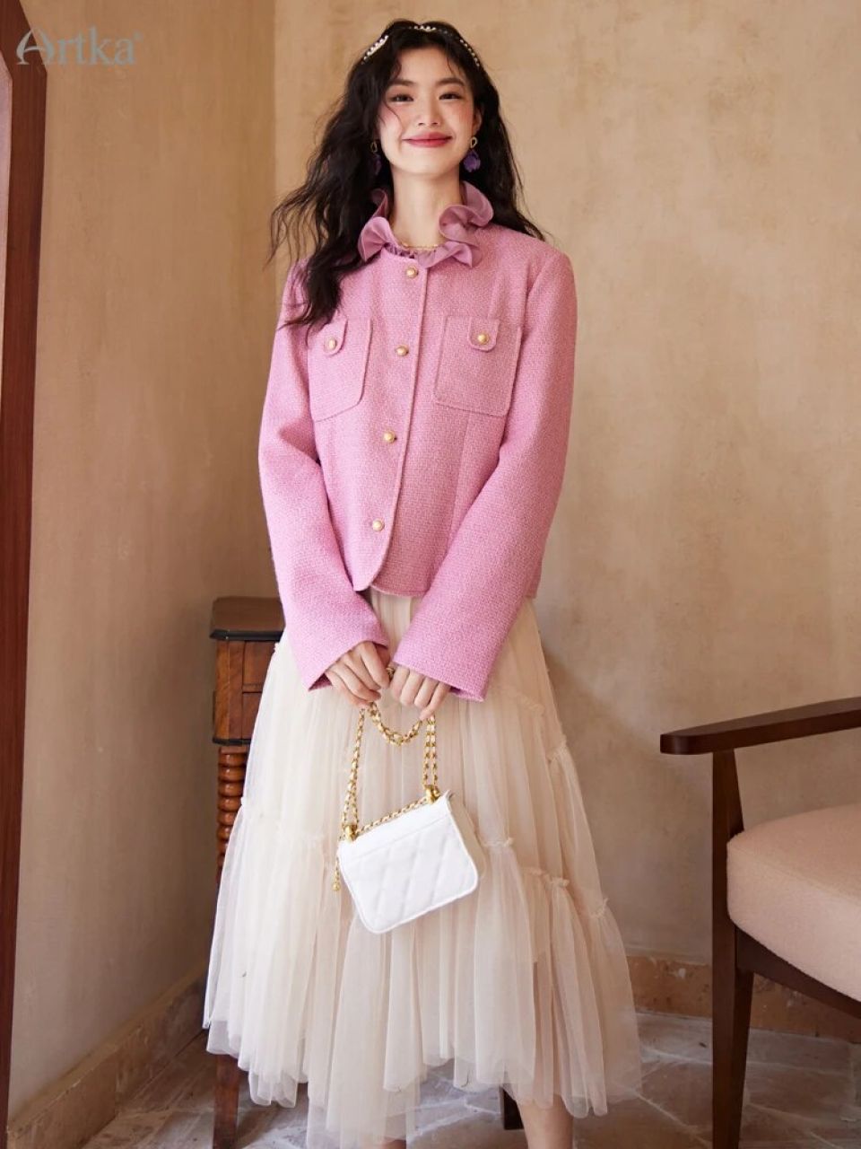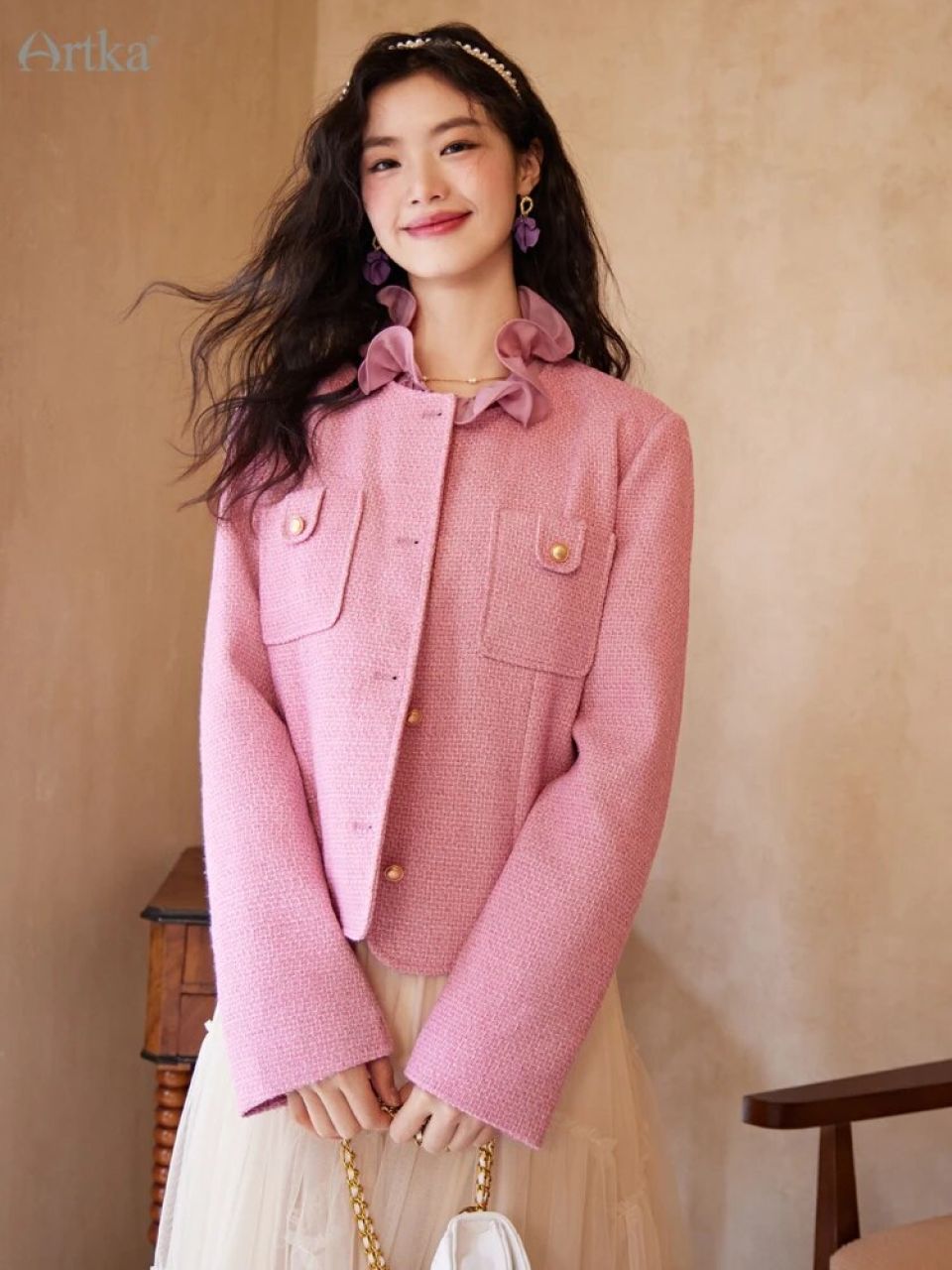 Breathe life into your Spring wardrobe with the Artka 2023 Spring New Women Coats, embodying the quintessential French elegance that never fails to enchant. With its subtle yet confident pink hue, the coat paints a picture of serene sunsets and blooming cherry blossoms, effortlessly merging the loose, relaxing fit with a sense of timeless sophistication. The single-breasted, O-neck style whispers an ode to the minimalistic, chic flair that French fashion is celebrated for.