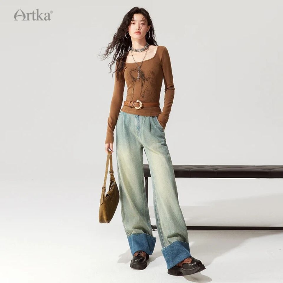 The allure of yesteryears combined with contemporary design intricacies creates a denim masterpiece. Artka's high-waist jeans transport you to a vintage era, all the while ensuring you stand out in today's fashion-forward crowd. The washed effect isn't just a decoration; it's a testament to the timeless journey of denim.