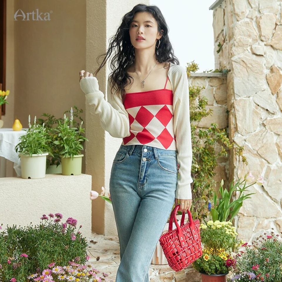Summer brings the promise of golden rays and the intoxicating allure of sunset soirees. Make every entrance memorable with the ARTKA New Women Tank Top. Woven with the delicate patterns of yesteryears, its vintage rhombus design is not just a choice but a statement. A representation of refined taste, this top melds the classic with the contemporary.