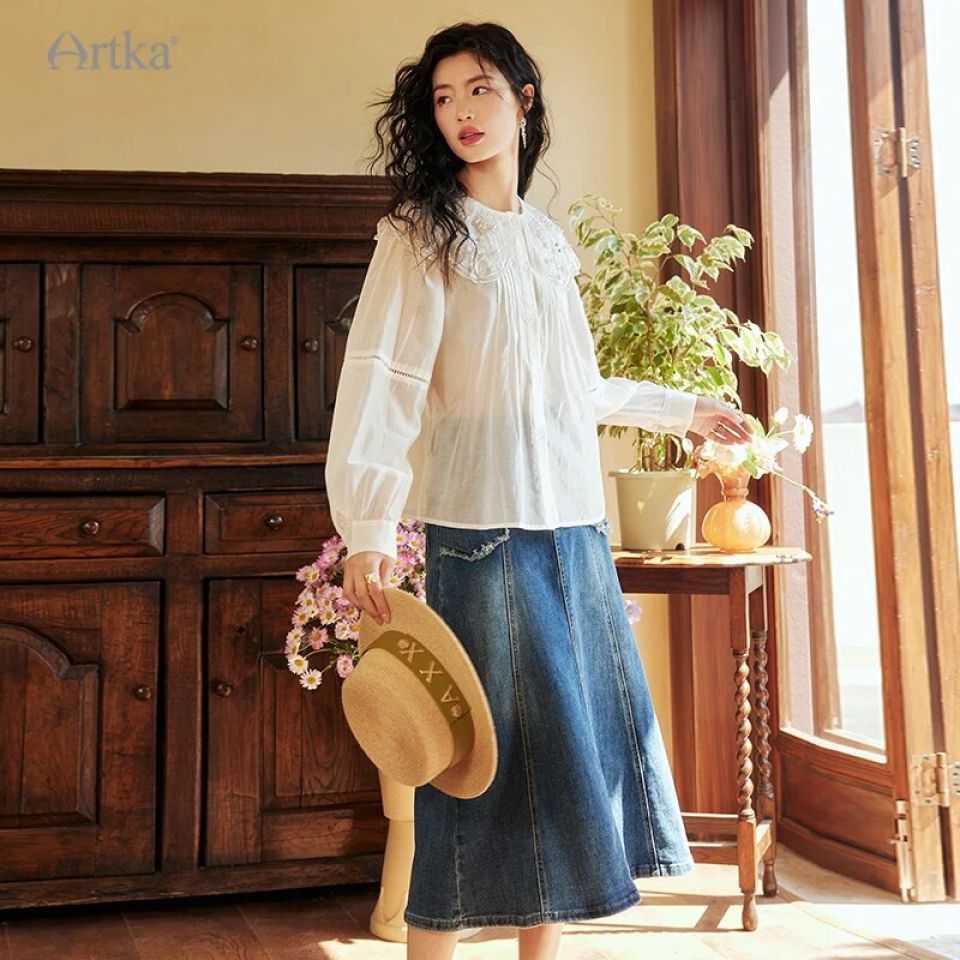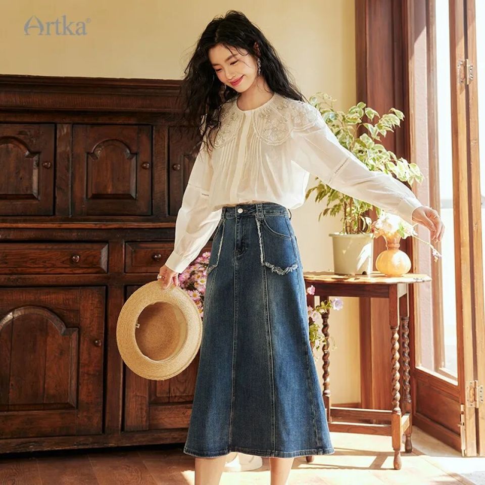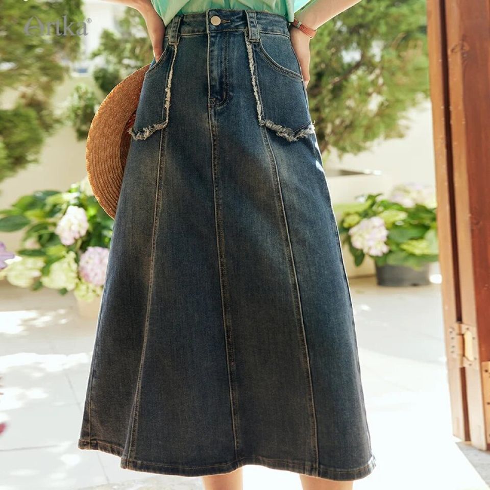 When it comes to effortlessly blending timeless elegance with casual chic, Artka knows just how to strike the perfect balance. The brand's summer 2023 release sees an embodiment of this very finesse. The vintage high-waist design harmoniously interplays with the modern A-line silhouette, making this denim skirt a versatile masterpiece.
