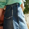 While trends come and go, solid patterns are here to stay. This denim skirt boasts a solid pattern, adding a touch of understated sophistication. Paired with its mid-calf length, it's the perfect choice for those who wish to exude class while keeping it casually chic.