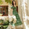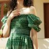 Fashion fades, but style endures. With its vintage design, this dress evokes a sense of nostalgia, taking you back to an age of classic elegance. The green print on a cotton blend fabric not only enriches its visual appeal but also provides an airy comfort ideal for the summer heat.