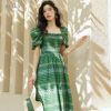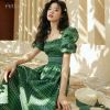 Every inch of this ankle-length dress has been meticulously designed to perfection. From its intricate vintage print to the absence of any excessive decoration, it focuses on highlighting the wearer’s beauty. The short puff sleeves add a youthful touch, making it a must-have addition for every woman’s summer wardrobe.