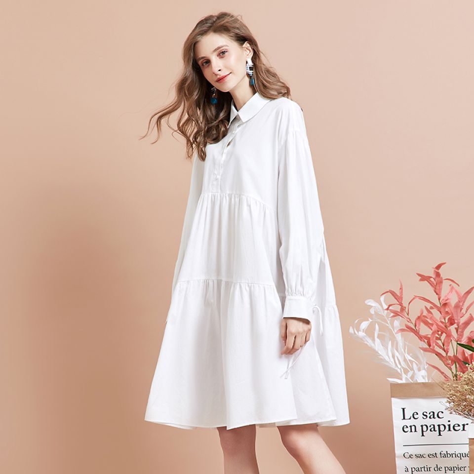 White Casual A-Line Shirt Dress