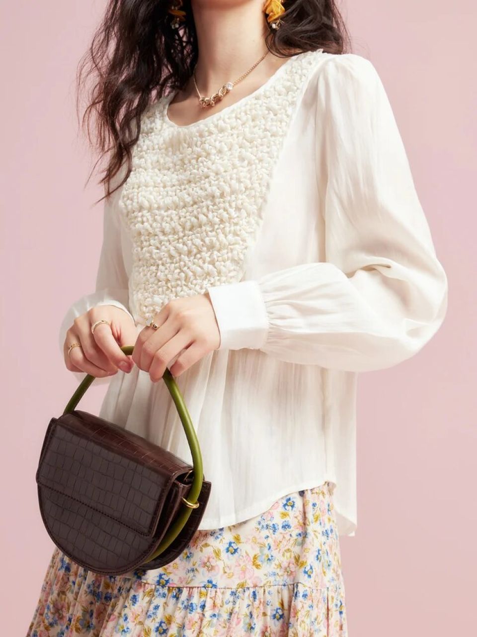 This blouse is all about the details. Its unique shirring design adds texture and depth, creating a delicate interplay of light and shadow on the fabric. The soft, feminine silhouette flatters your figure and showcases the exquisite craftsmanship that has gone into making this piece.