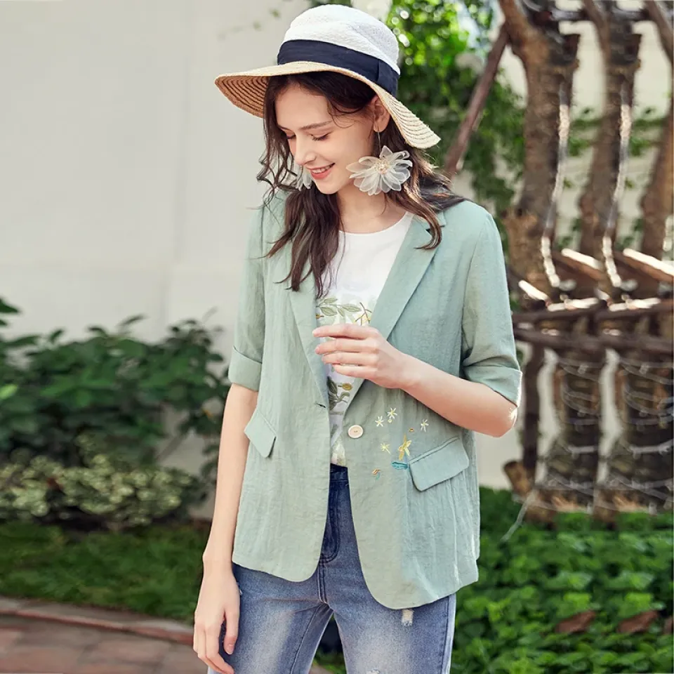 Unlike ordinary office blazers, this piece boasts delicate embroidery, bringing life and character to your wardrobe. The subtle yet striking design adds a modern twist to a classic blazer, showcasing your keen fashion sense and attention to detail. Whether you’re giving a presentation or attending a networking event, this blazer will make a memorable impression.