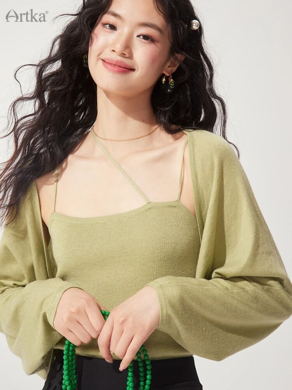Indulge in a garment that speaks the language of elegance fluently and with conviction. The Artka Wool Knitted Cardigan Camisole Set, with its loose fit and batwing sleeves, is a symphony of comfort and refined aesthetics. Designed with the professional ‘Office Lady’ in mind, it silently commands attention and radiates competence while its solid pattern seamlessly integrates into various office environments, ensuring you’re prepared for every agenda, every meeting, every day.