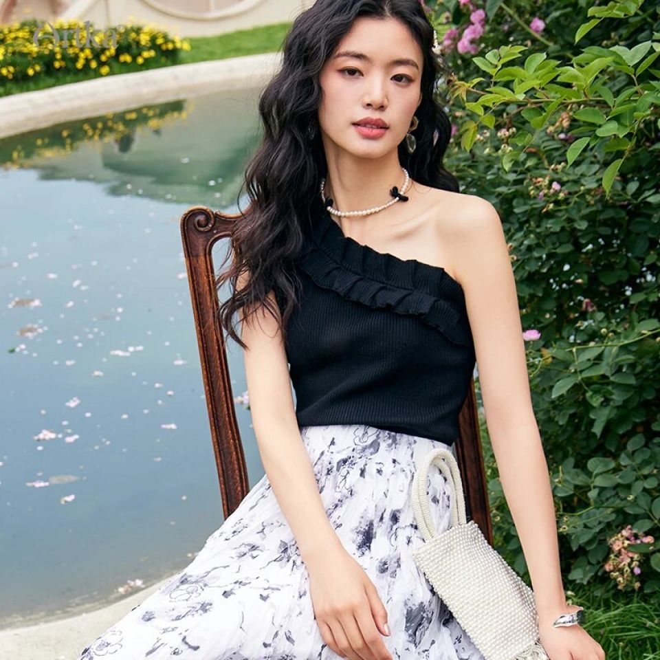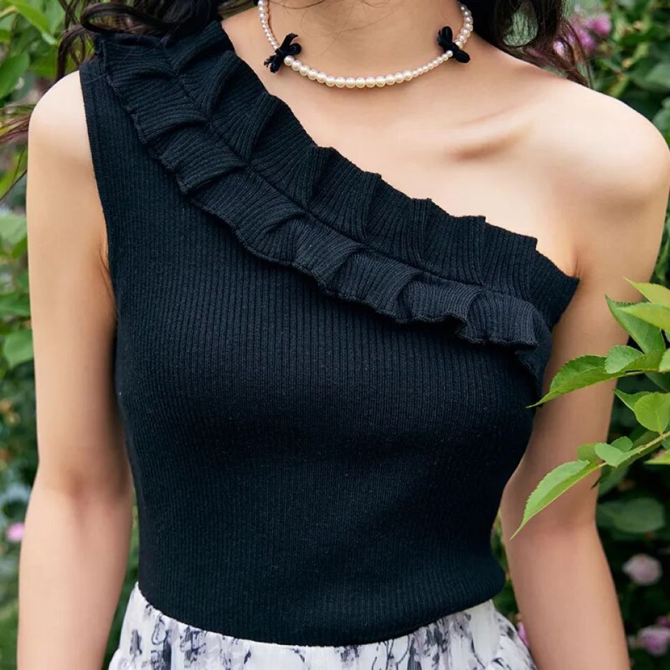 Be the first to review “Wool Knitted One Shoulder Ruffle Tank Top”