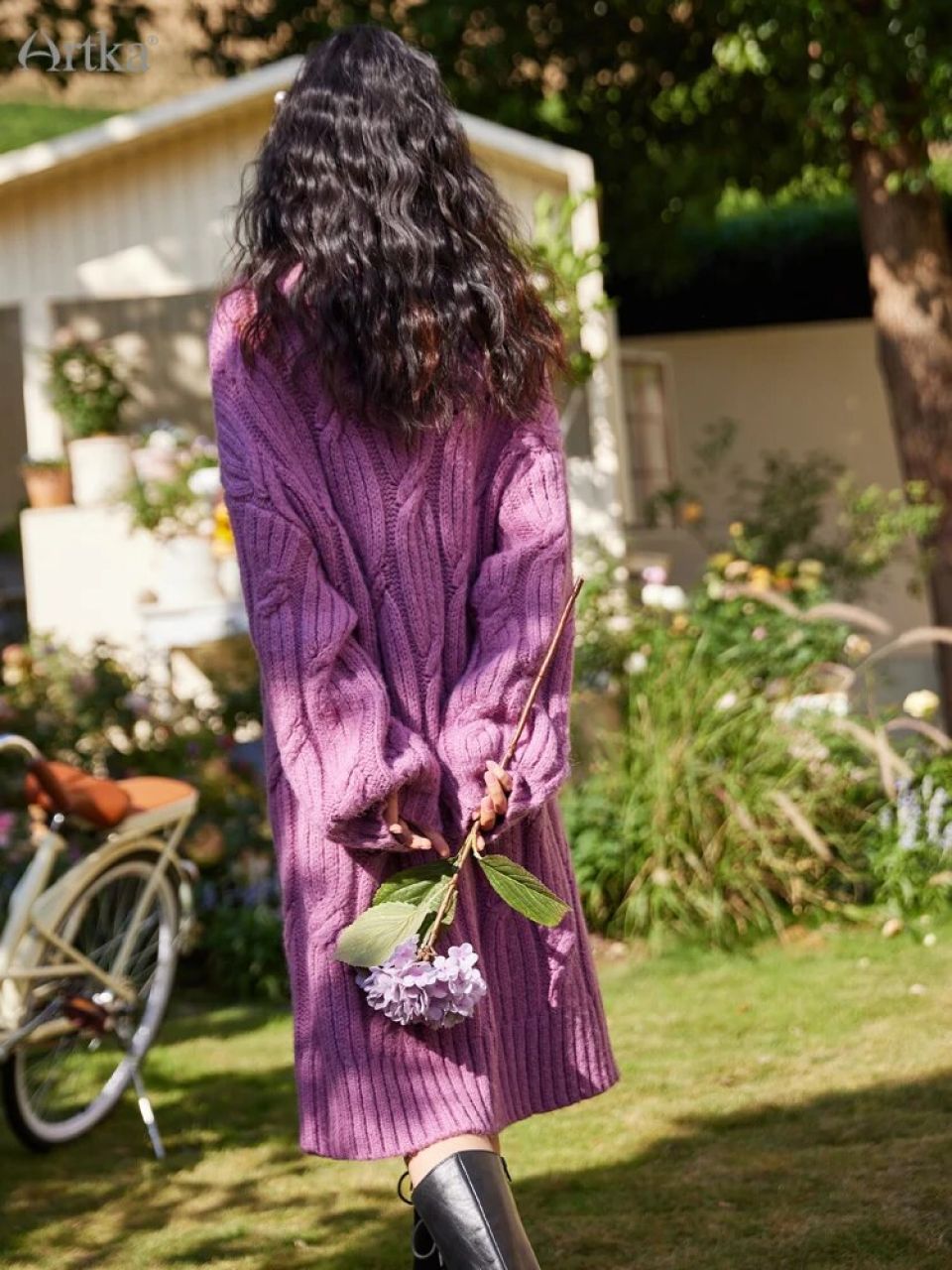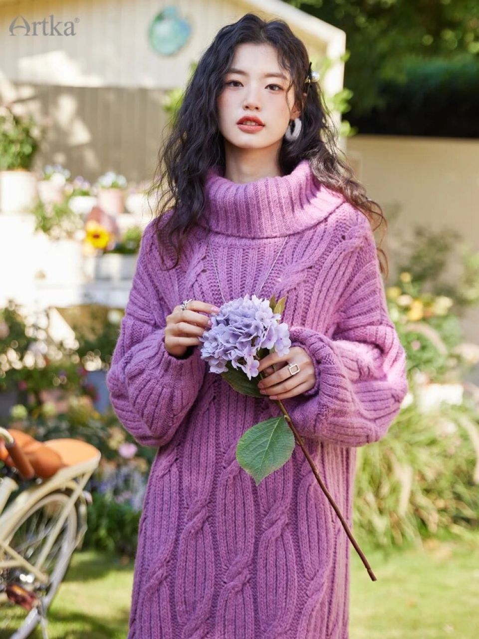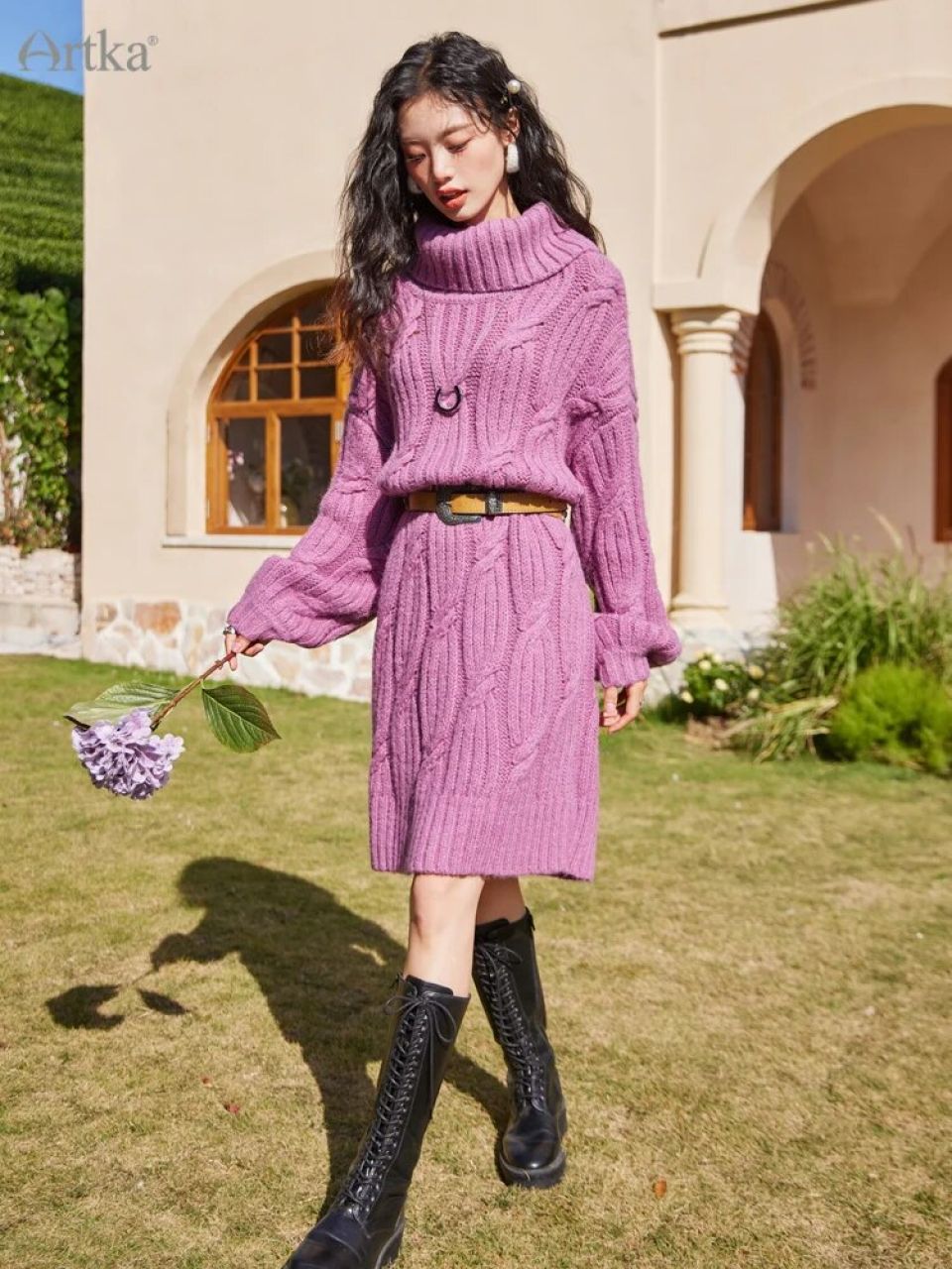 The ARTKA sweater dress features a sophisticated turtleneck design, offering not just warmth but also a style that is timeless and elegant. The turtleneck acts as a cozy, stylish collar that frames your face beautifully, creating a look equally suitable for office wear or a casual day out in the winter. Its full sleeves provide additional warmth, enveloping a gentle embrace during the colder days.