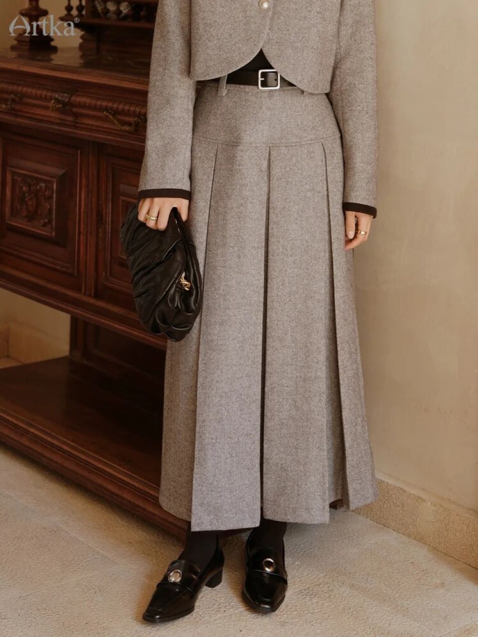 Elevate Your Style with the Artka Woollen Pleated Skirt Co-ord Set